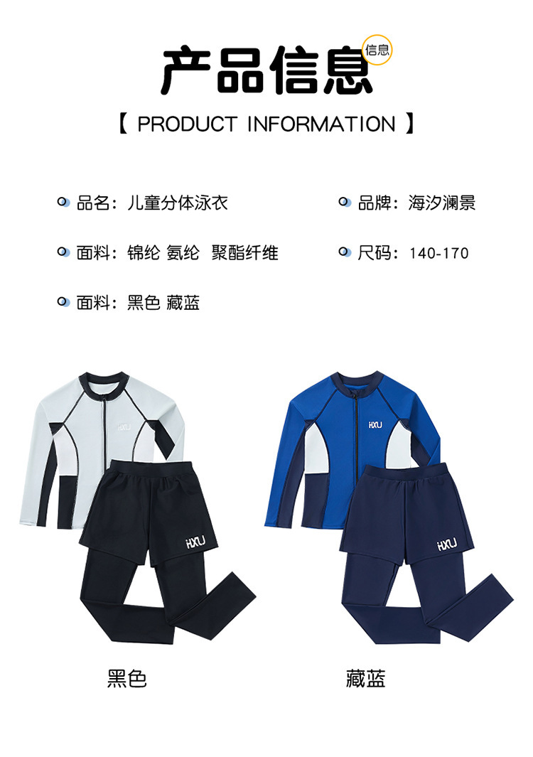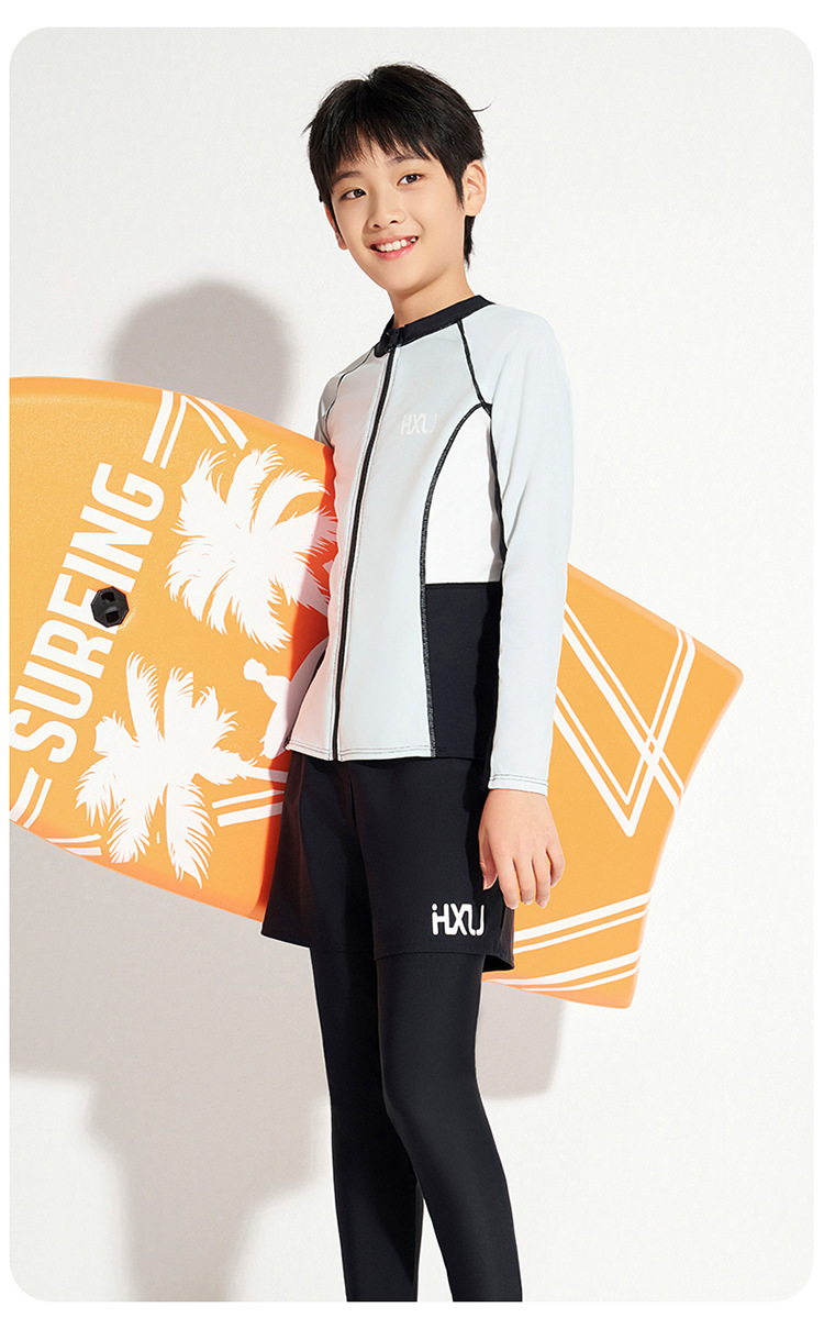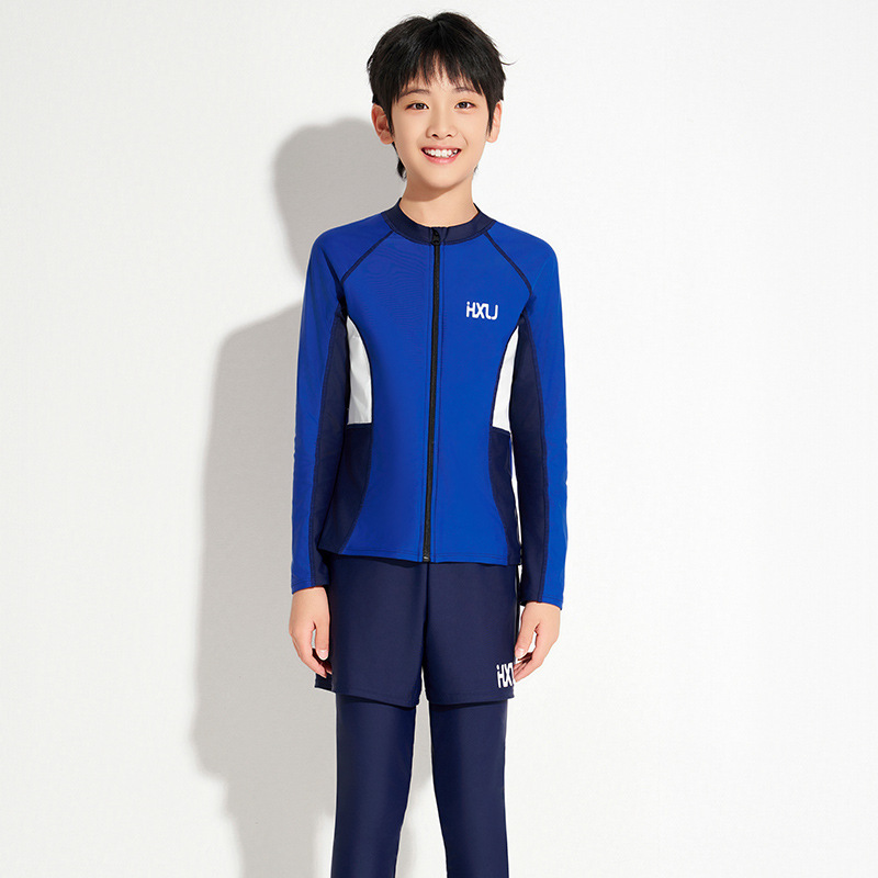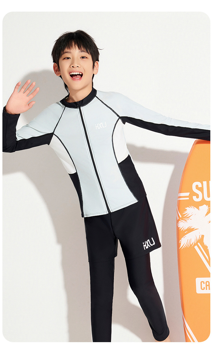 Haixilanjing 어린이 수영복 소년, 청소년, 학생, 중대형 어린이 자외선 차단 스플릿 긴팔 바지 속건성 수영복