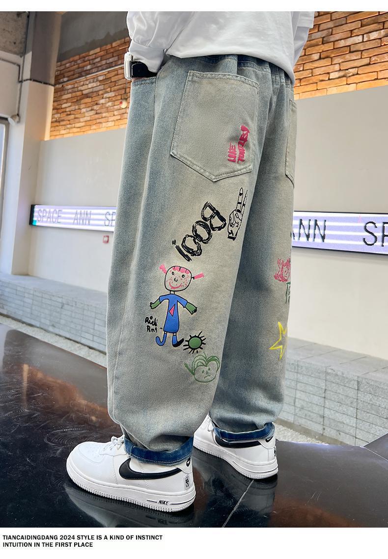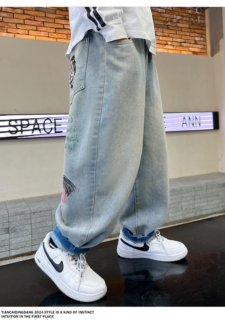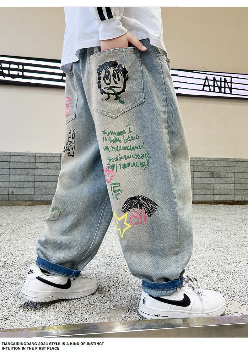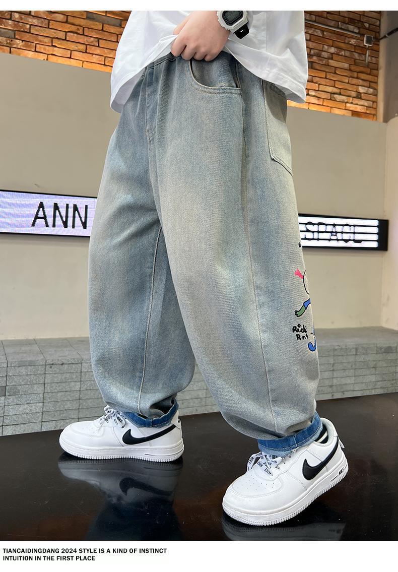 남아 청바지 2025 봄 가을 신상 아동복 한국식 루즈 캐주얼 팬츠 스트리트 패션 빅 아동 봄 패션 트렌드