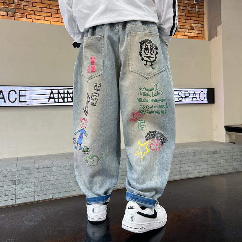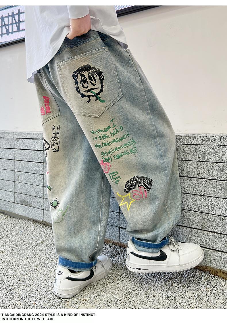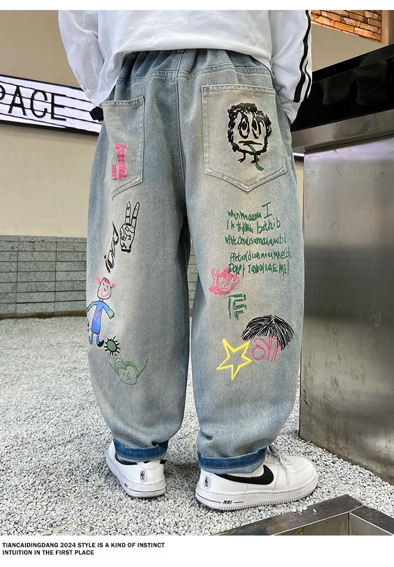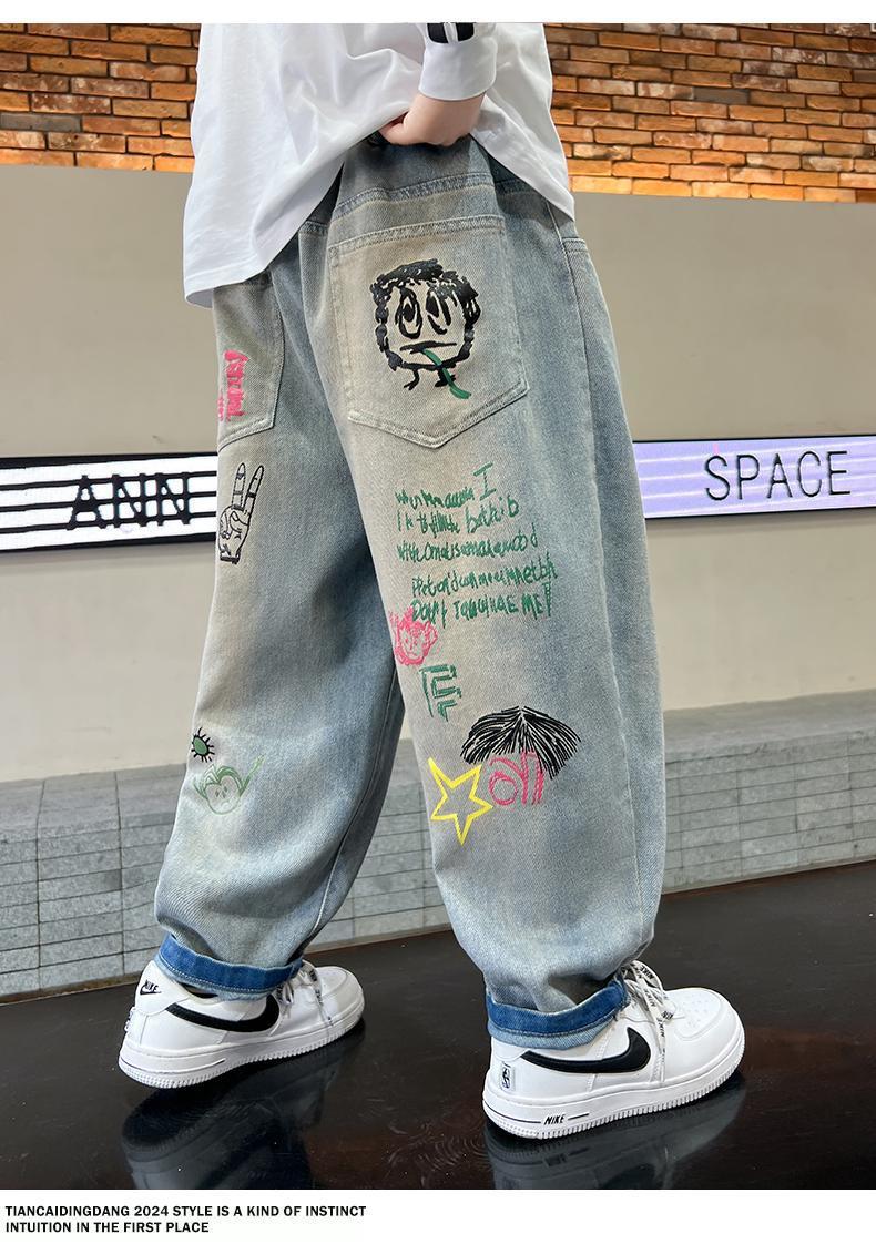 남아 청바지 2025 봄 가을 신상 아동복 한국식 루즈 캐주얼 팬츠 스트리트 패션 빅 아동 봄 패션 트렌드