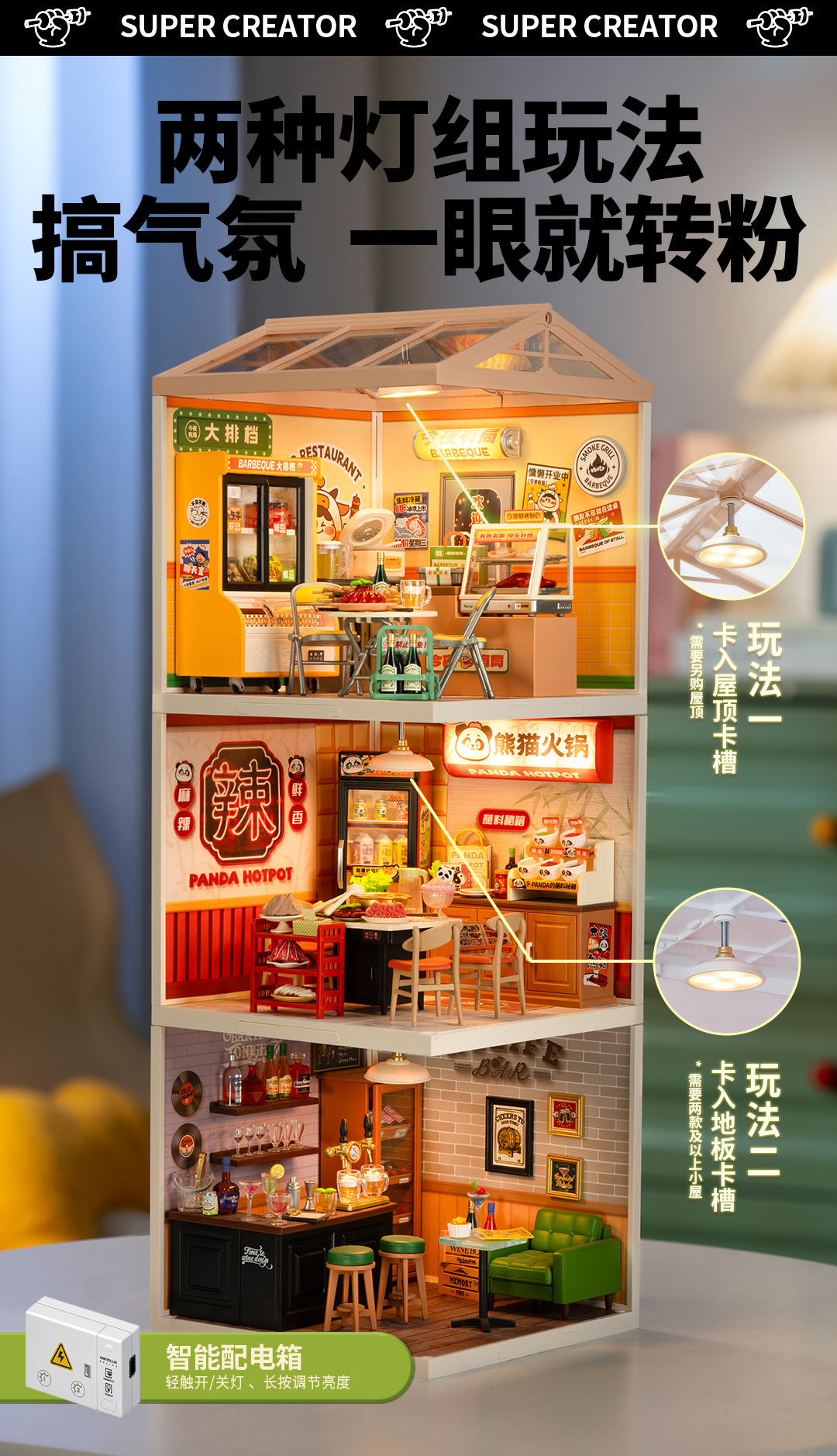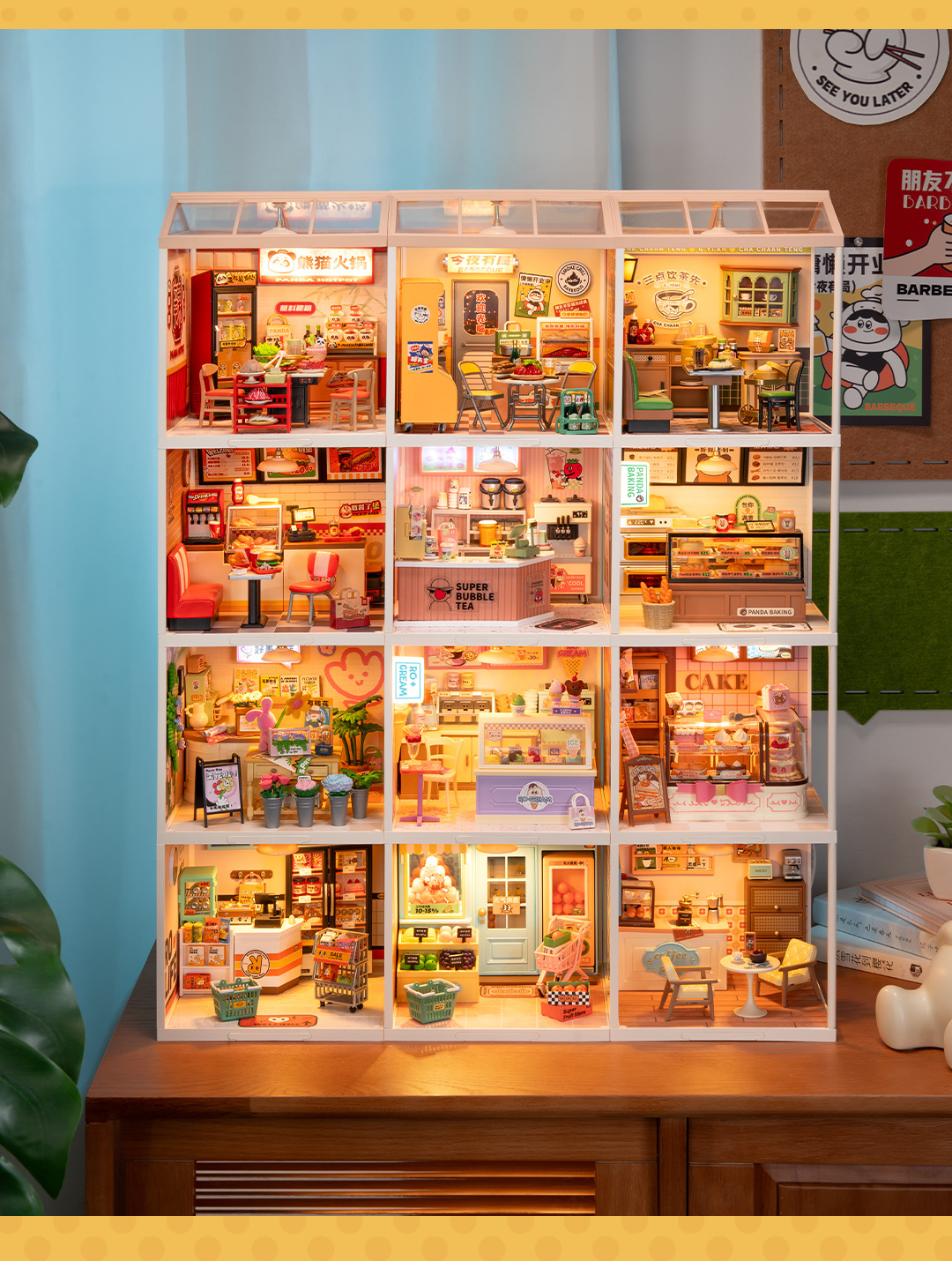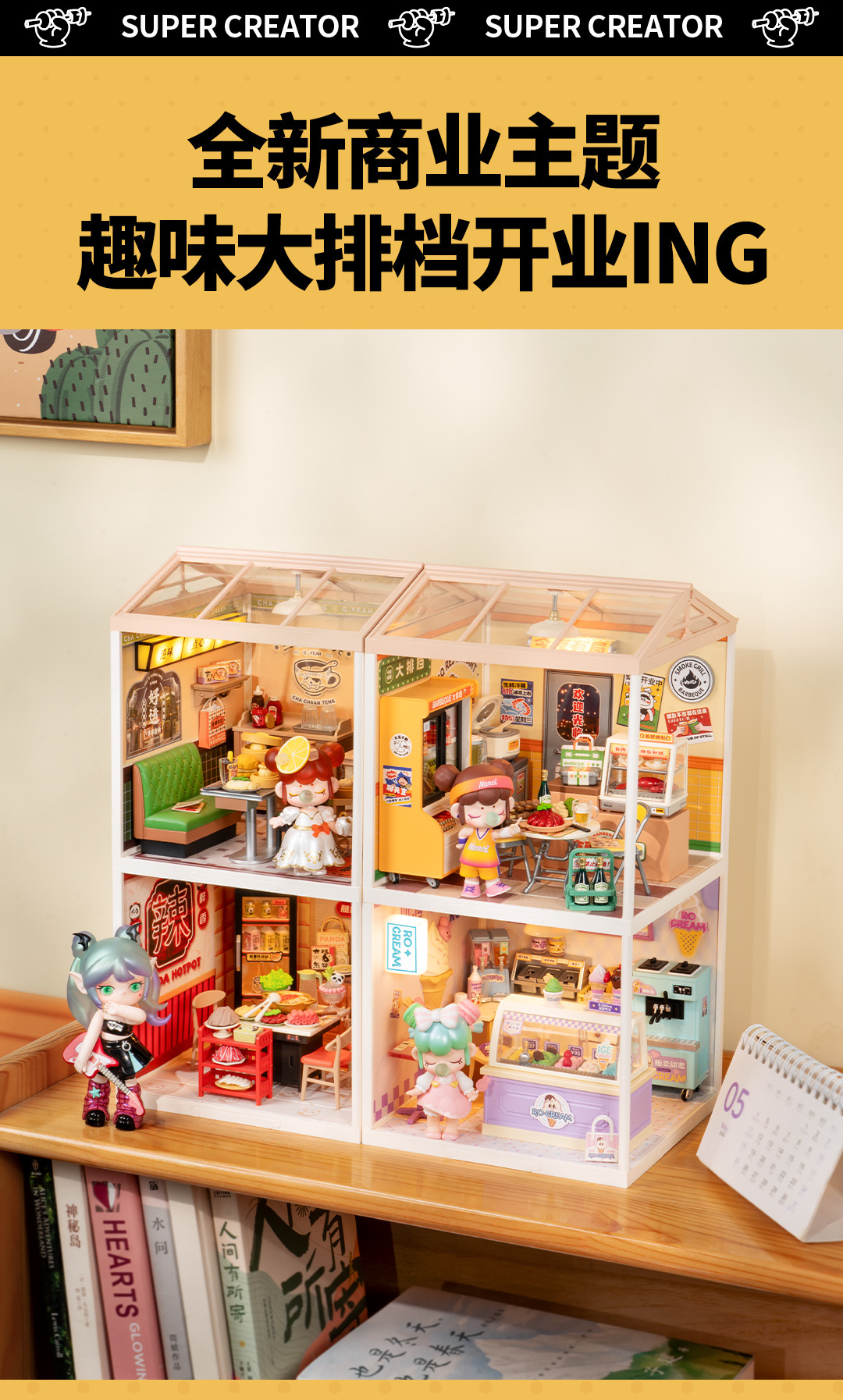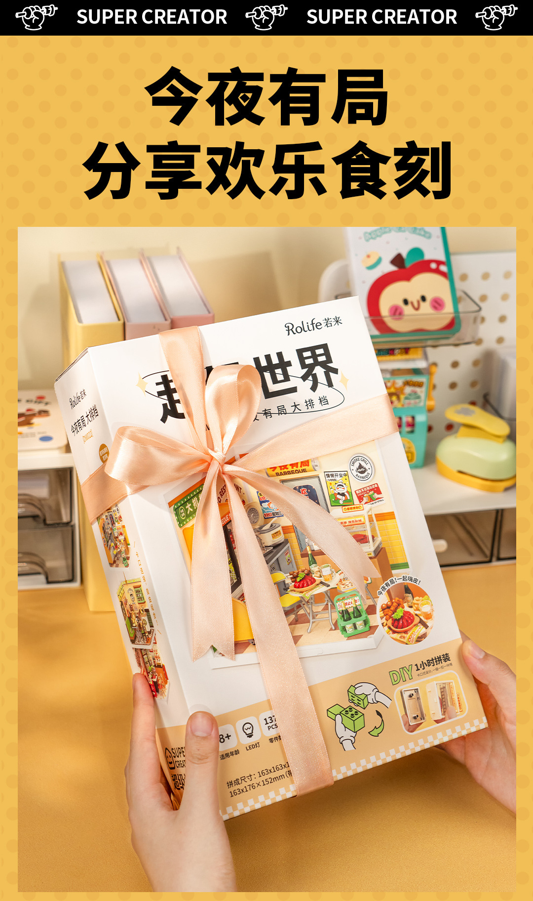 Rolife Ruolai 슈퍼 스토어 월드 푸드 트럭 diy 캐빈 미니 수제 데스크탑 장식품 빌딩 블록 장난감