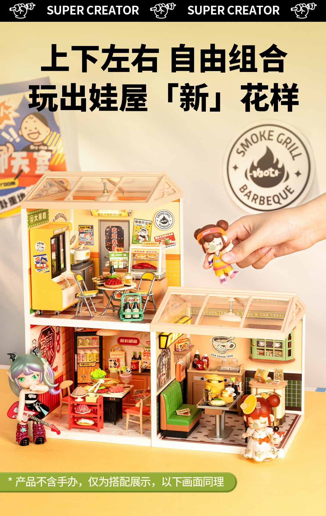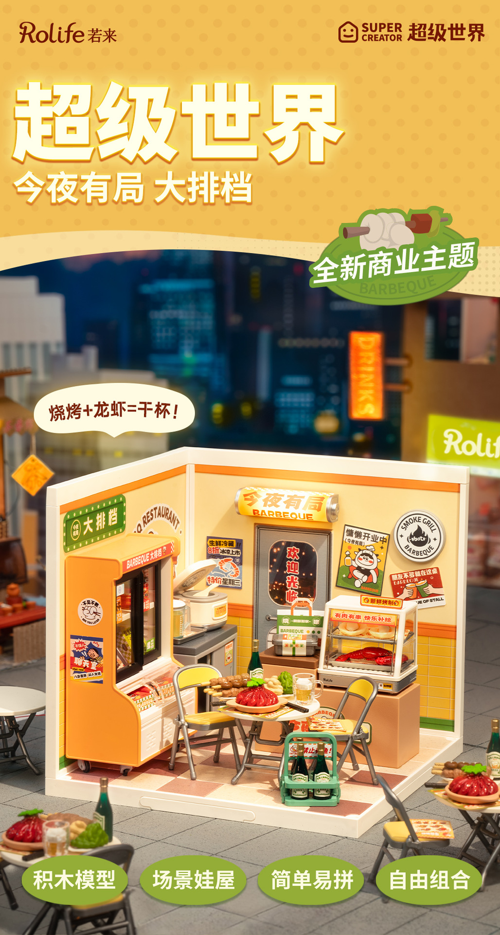 Rolife Ruolai 슈퍼 스토어 월드 푸드 트럭 diy 캐빈 미니 수제 데스크탑 장식품 빌딩 블록 장난감스토어 가기