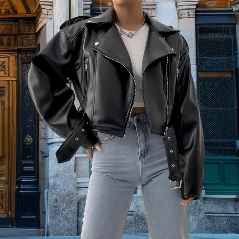 국경 간 대외 무역 유럽과 미국 의류 2025 가을 복고풍 옷깃 모조 가죽 자켓 오토바이 스타일 자켓 PU AliExpress TE