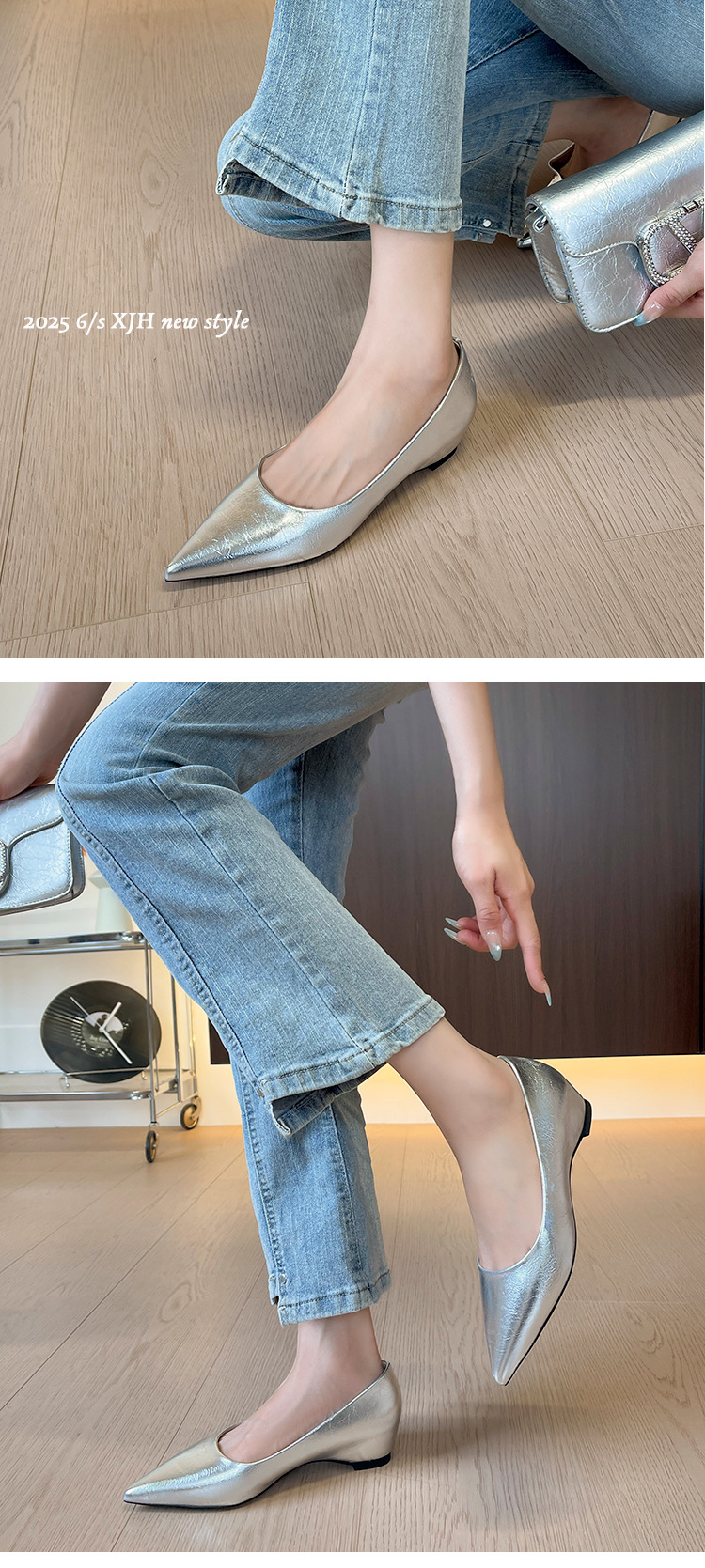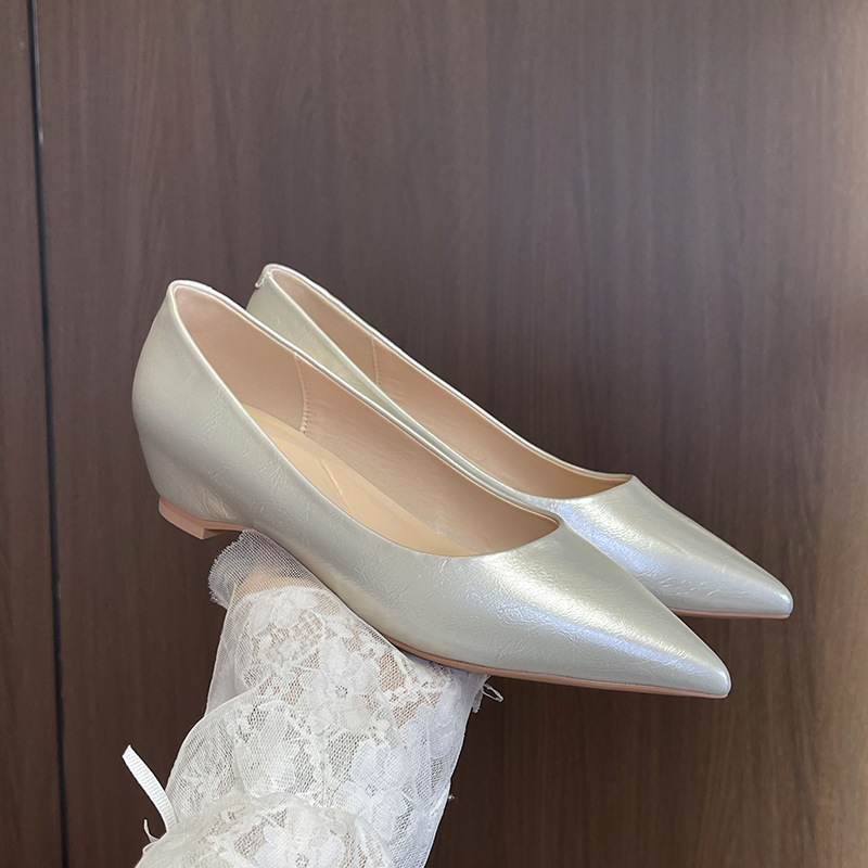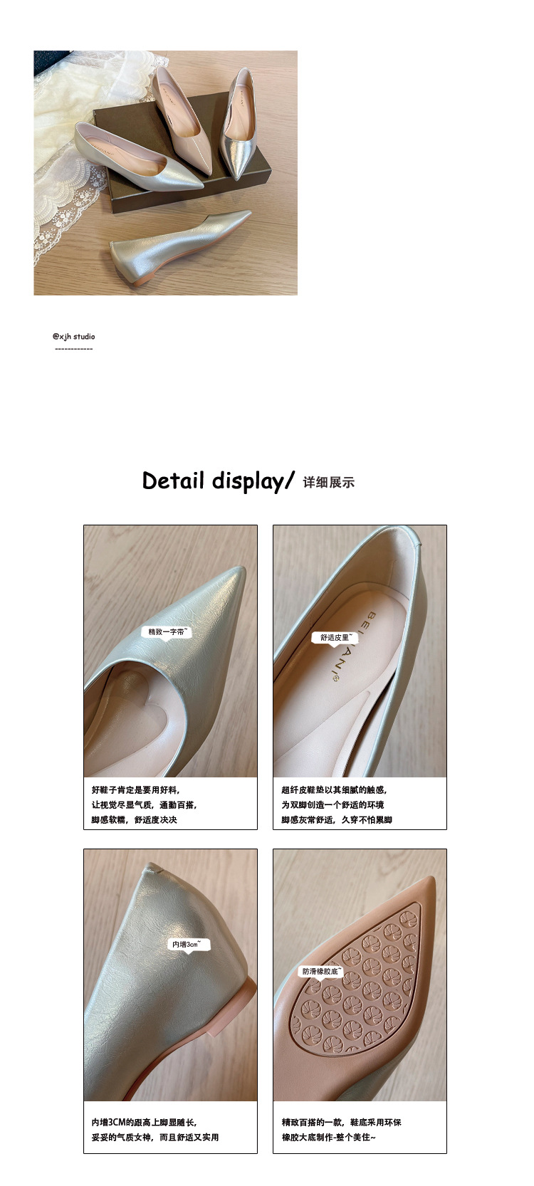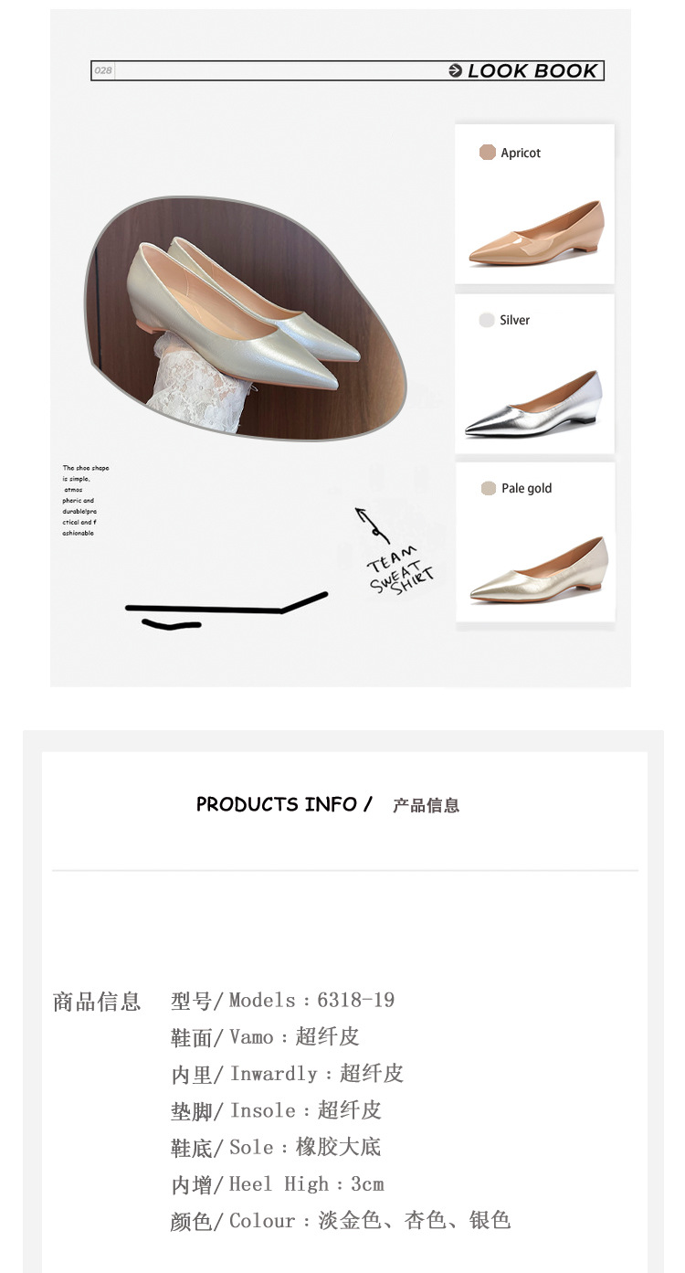 6318-19 여성용 작은 키 키 증가 신발, 웨지 힐, 뾰족한 발가락, 통근용 다용도 펌프스 작업 신발, 부드러운 가죽 3CM스토어 가기