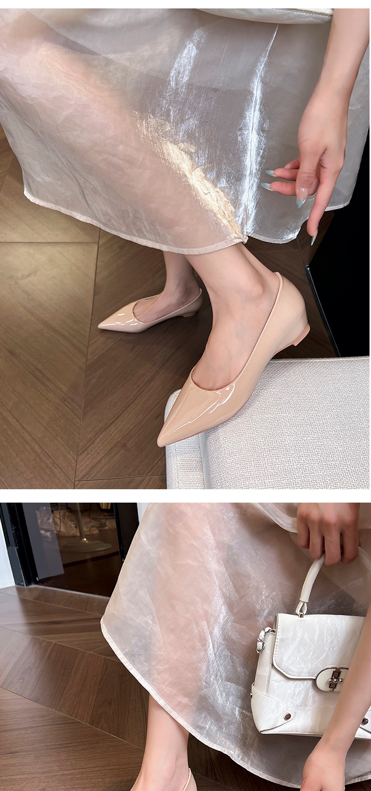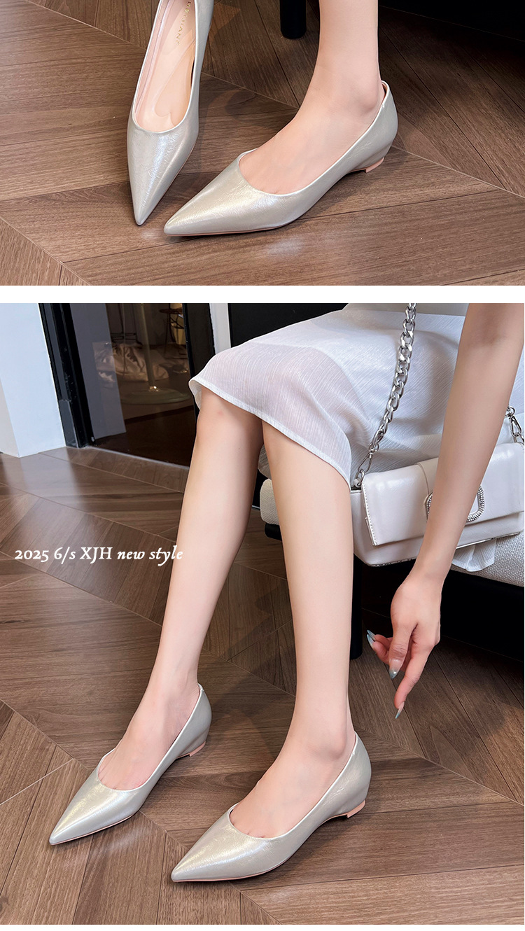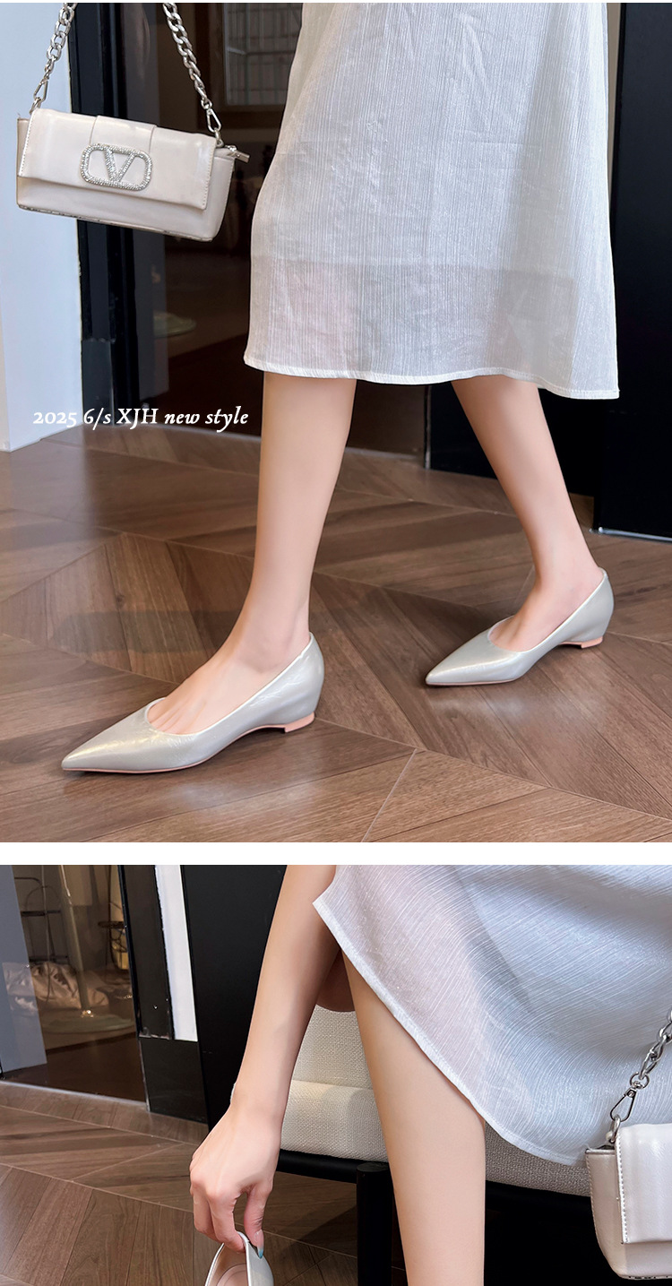 6318-19 여성용 작은 키 키 증가 신발, 웨지 힐, 뾰족한 발가락, 통근용 다용도 펌프스 작업 신발, 부드러운 가죽 3CM스토어 가기