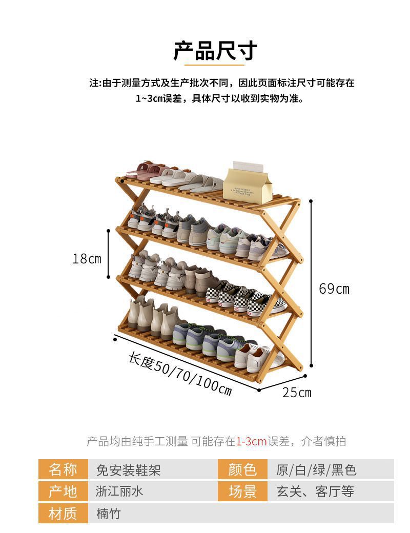 고급스럽고 설치가 필요 없는 간단한 신발장, 실내 다층 소형 좁은 집 문 접이식 신발장 보관 유물