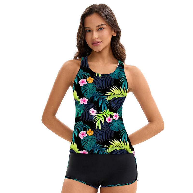 아마존 여성 보수적 타키니 수영복 대외 무역 유럽과 미국 스포츠 하이 웨이스트 복서 크로스 보더 스플릿 수영복 도매스토어 가기