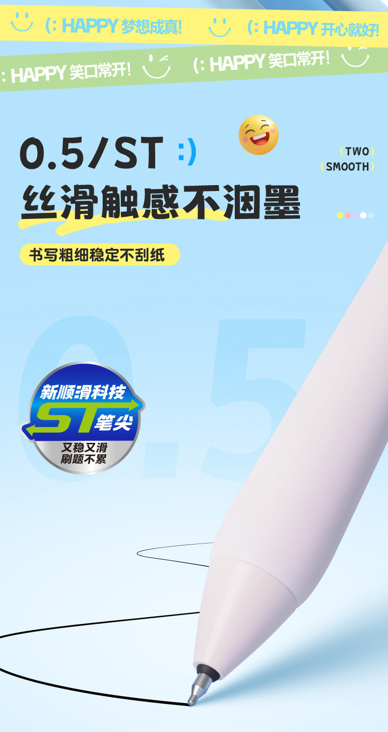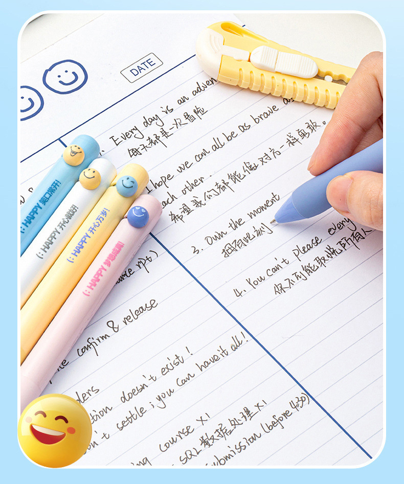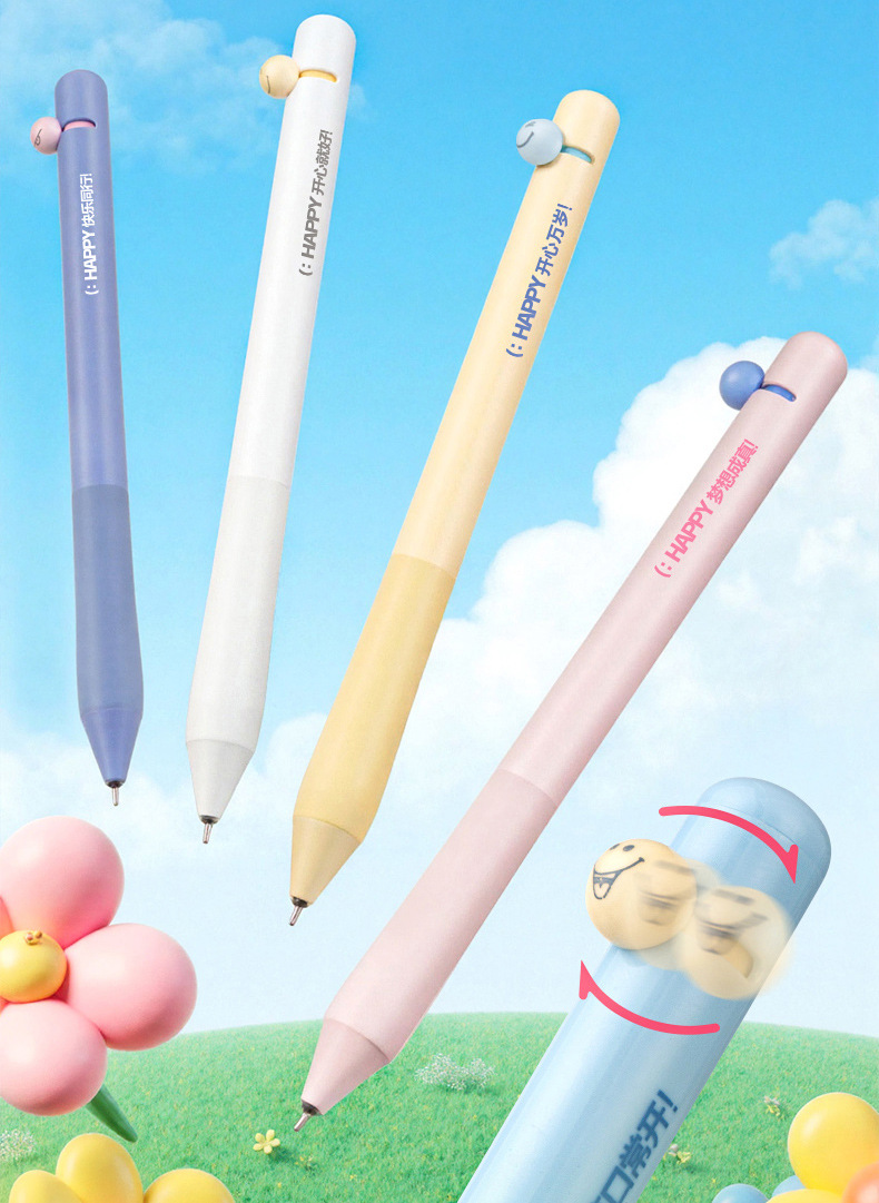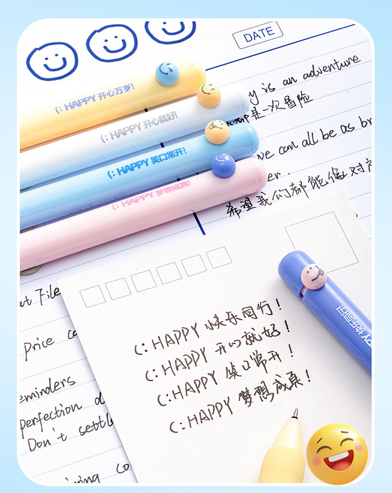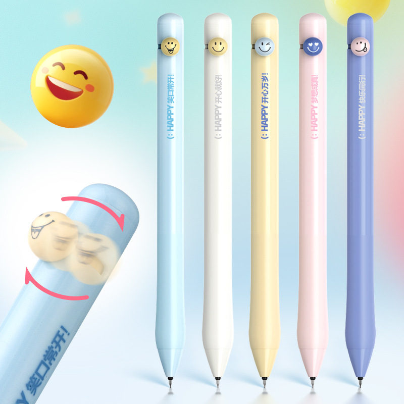 취미, 행복 만세, 웃는 얼굴 펜, ST 펜촉 토글 젤펜, 학생용 브러쉬 퀵 드라이 블랙 0.5, 편안한 그립감