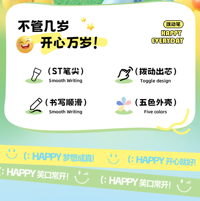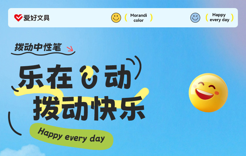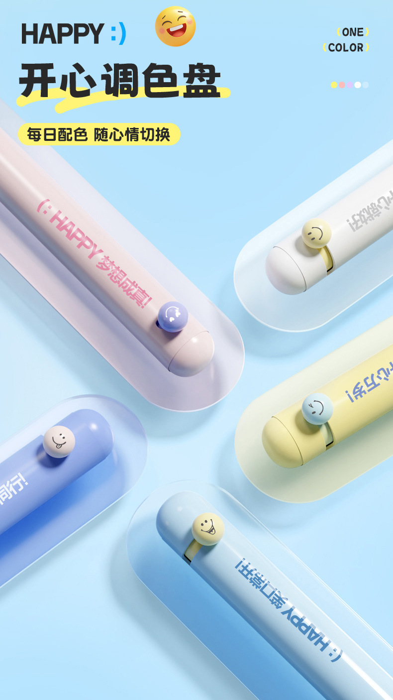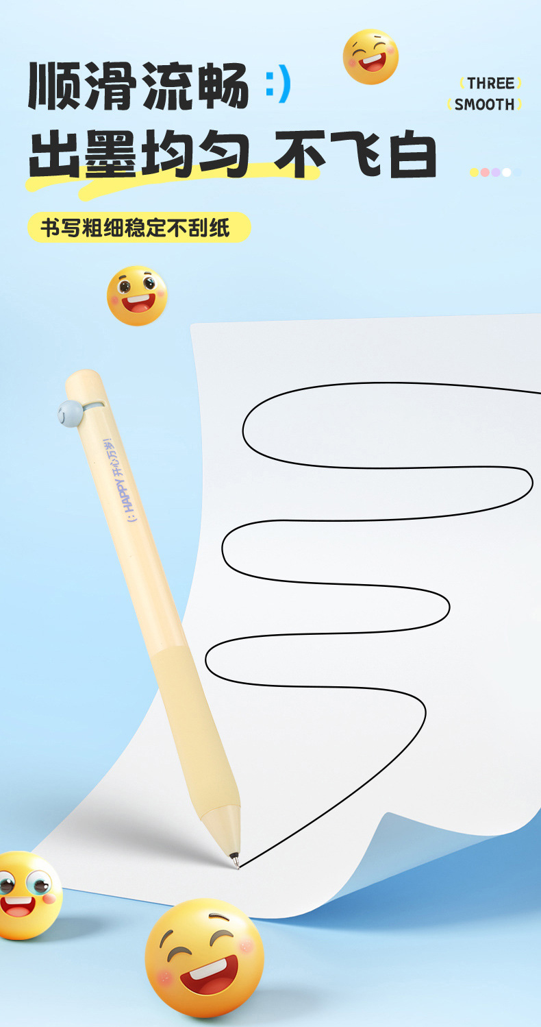 취미, 행복 만세, 웃는 얼굴 펜, ST 펜촉 토글 젤펜, 학생용 브러쉬 퀵 드라이 블랙 0.5, 편안한 그립감