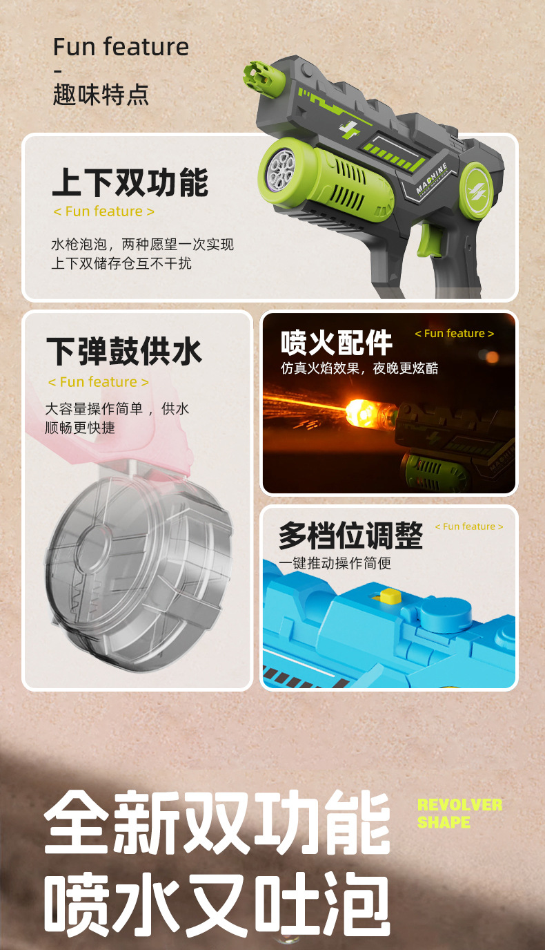 국경 간 이중 기능 전기 연속 어린이 물총 장난감 대용량 장거리 물총과 거품 부는 기계