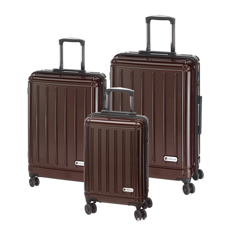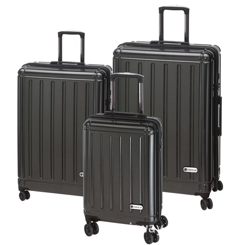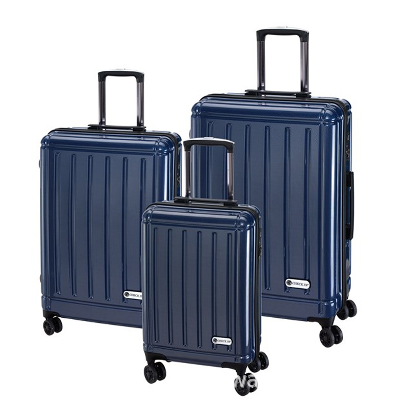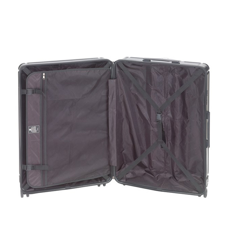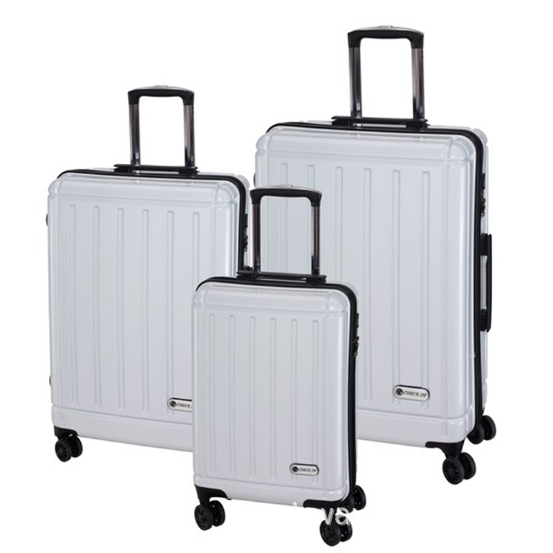 | Main material | shiny finished with pattern printing, spinner wheels, aluminum trolley system ,zipper closure |