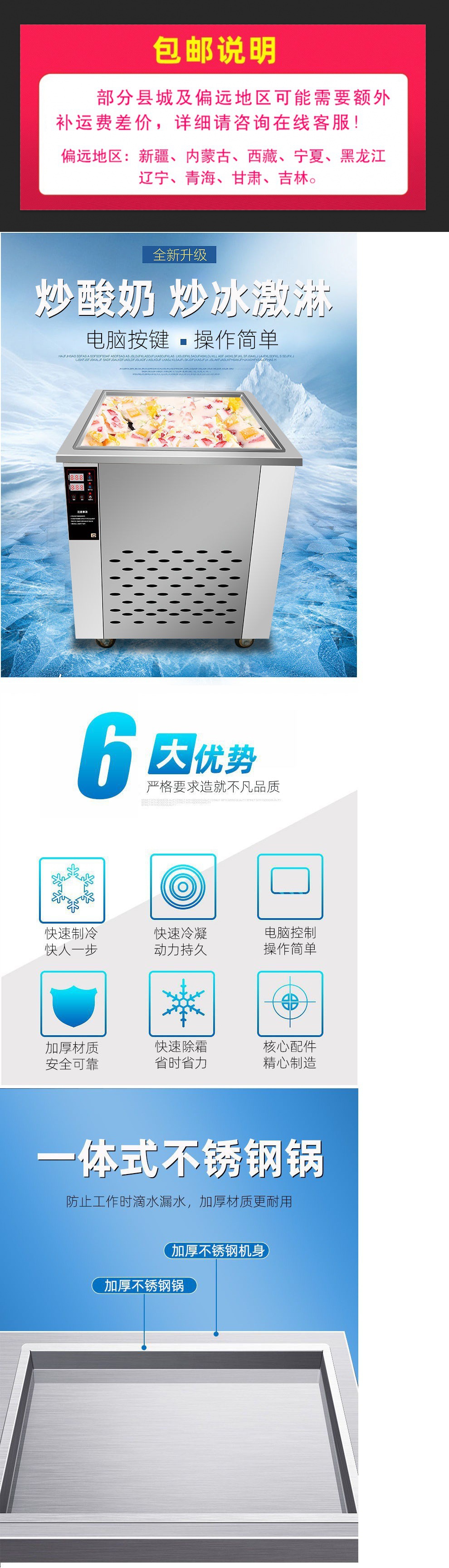 완전 자동 지능형 아이스크림 기계, 상업용 에너지 절약형 요거트 기계, 아이스크림 롤, 얼음 죽, 두꺼운 컷 플랫 팬, 싱글 팬
