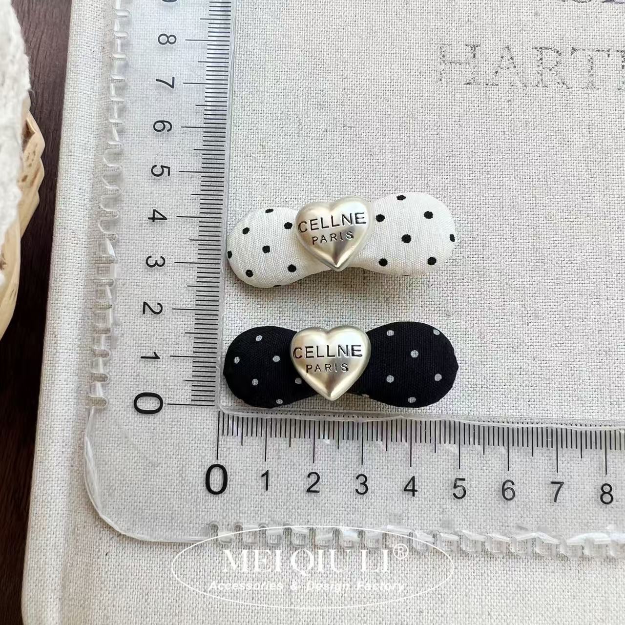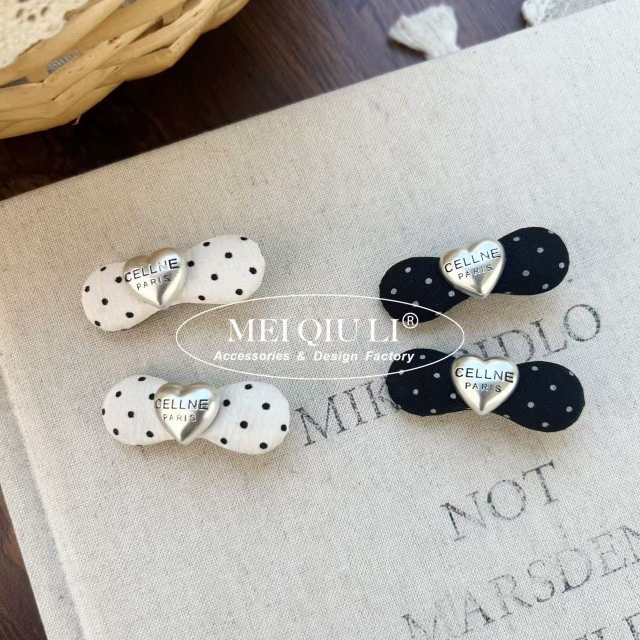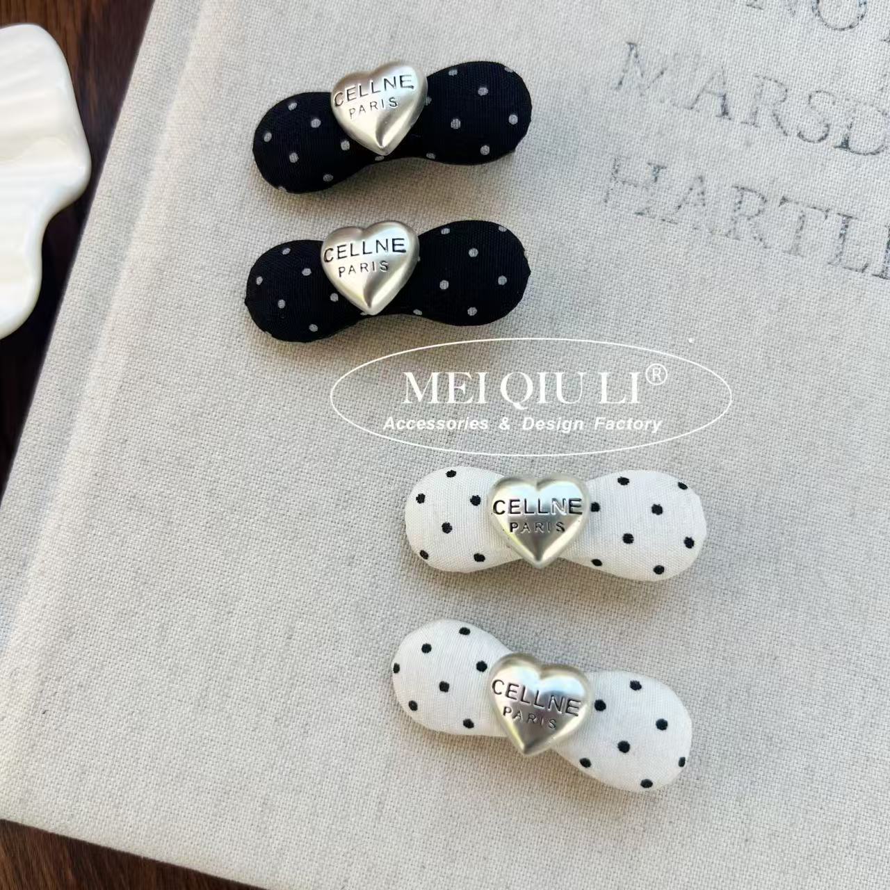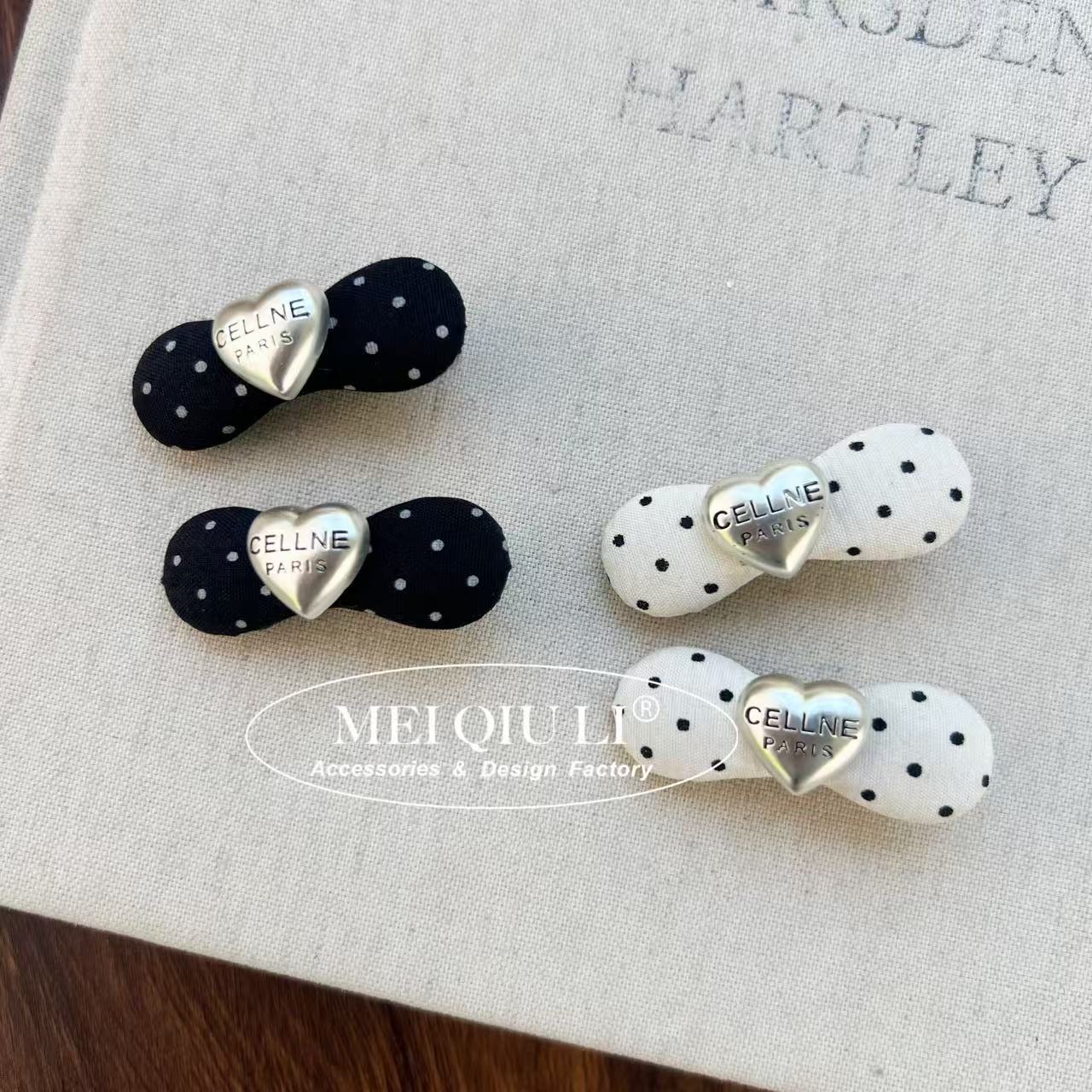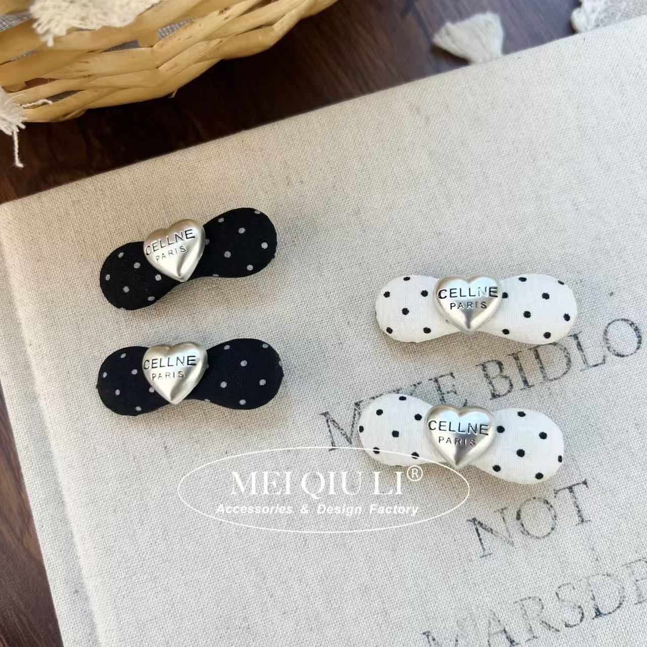 • 편지 사랑 검은색 물방울 무늬 리본 덕빌 클립