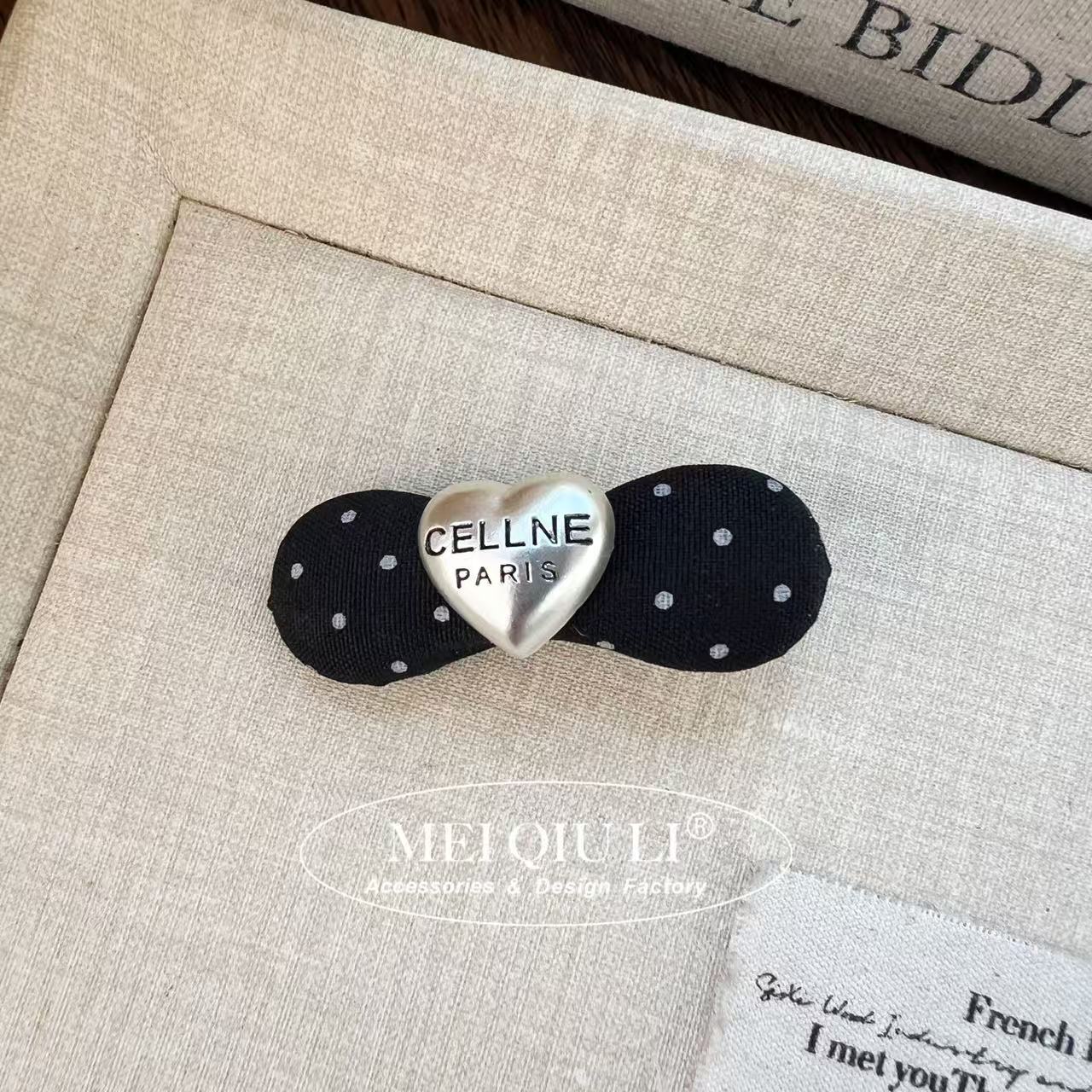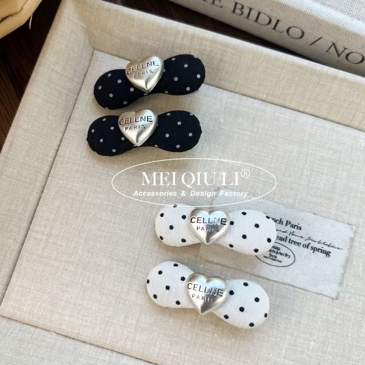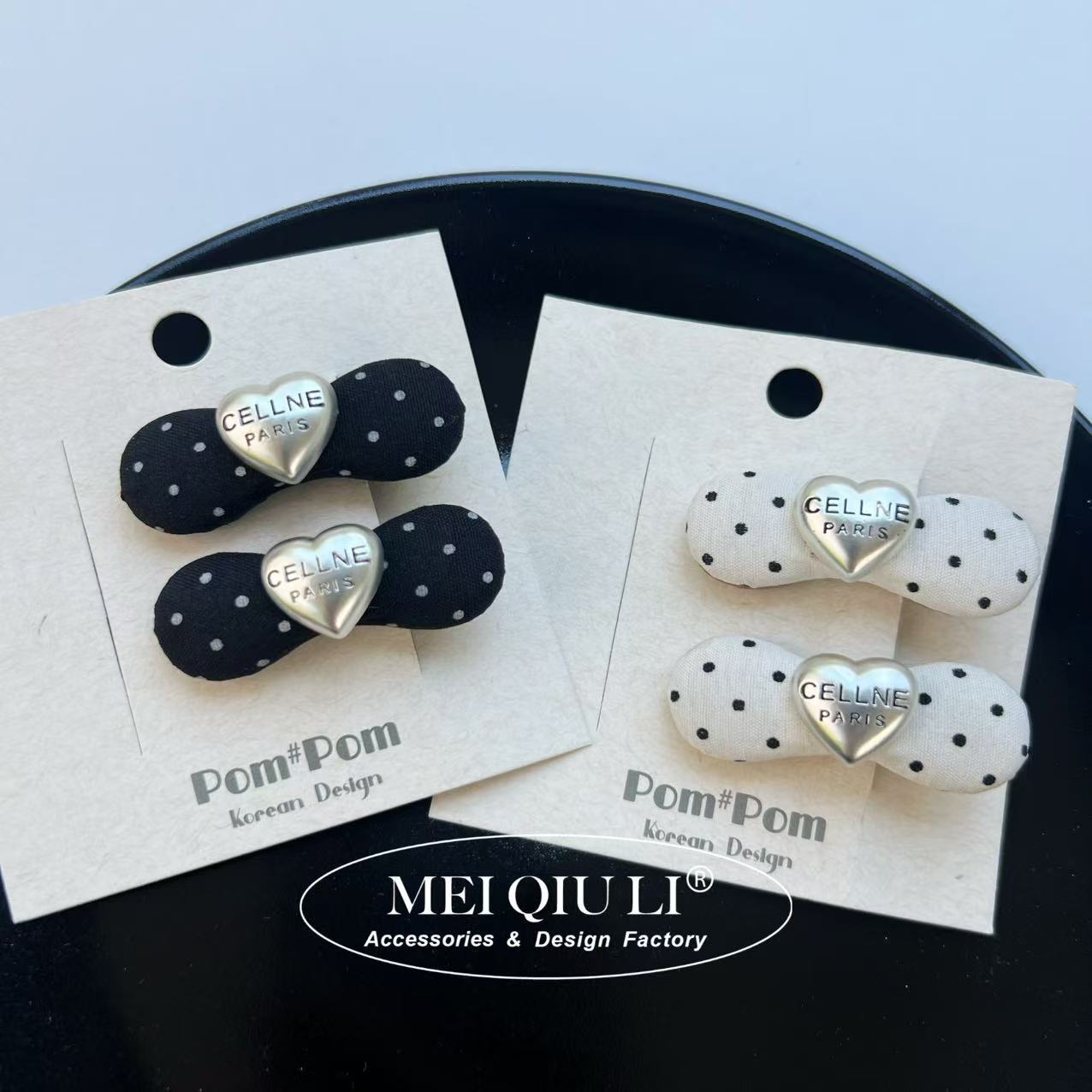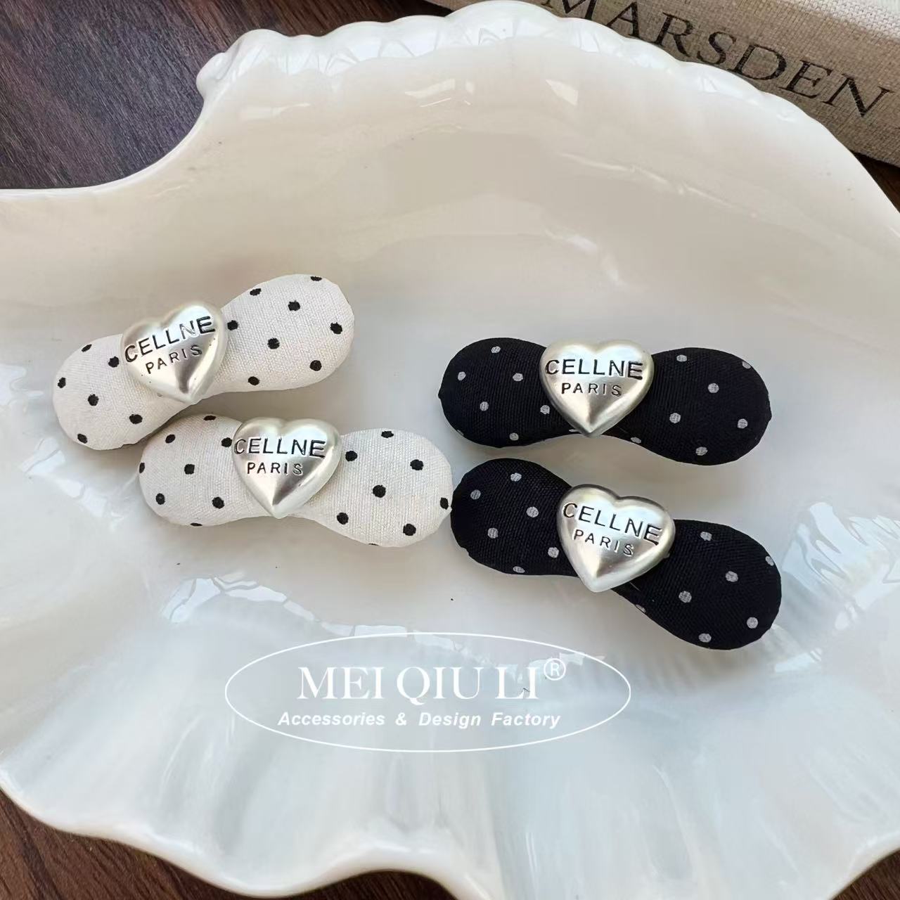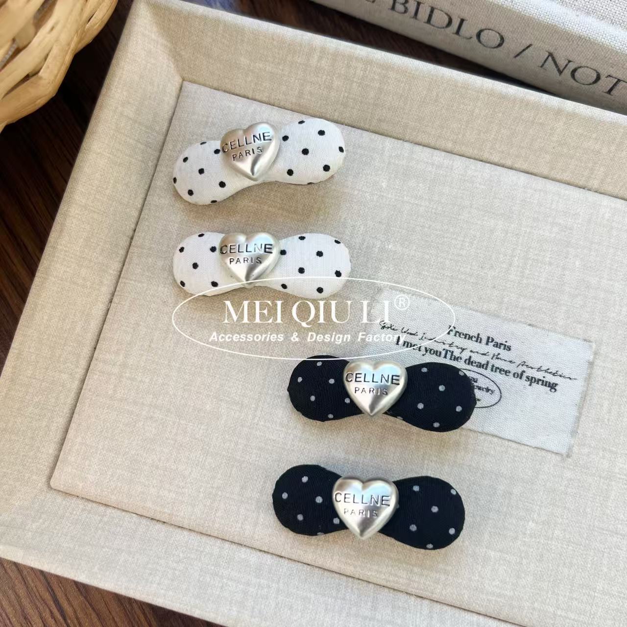 • 편지 사랑 검은색 물방울 무늬 리본 덕빌 클립