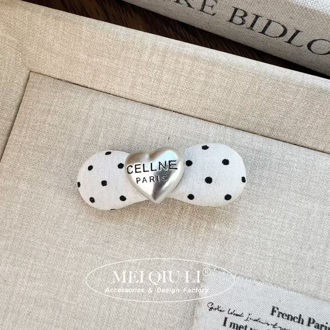 • 편지 하트 흰색 물방울 무늬 리본 덕빌 클립