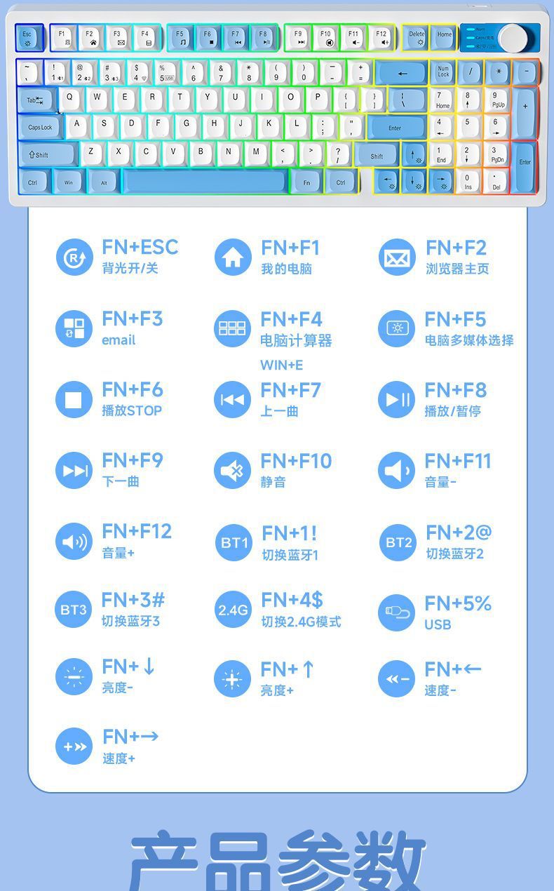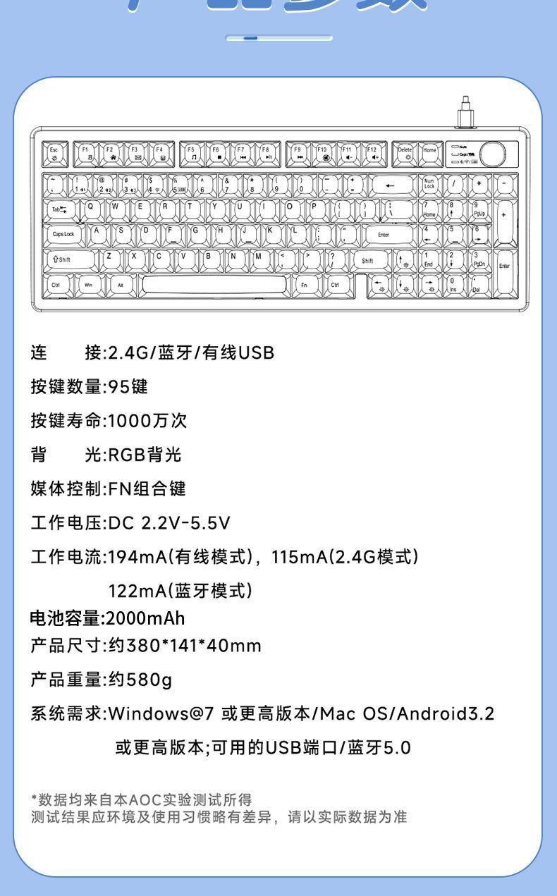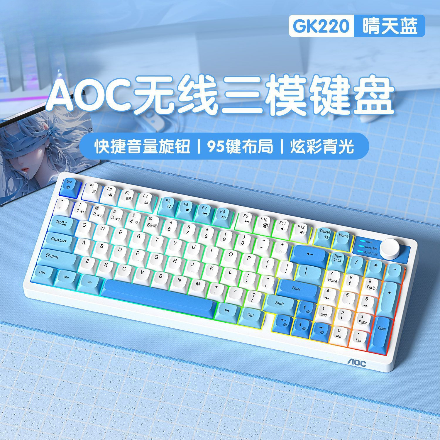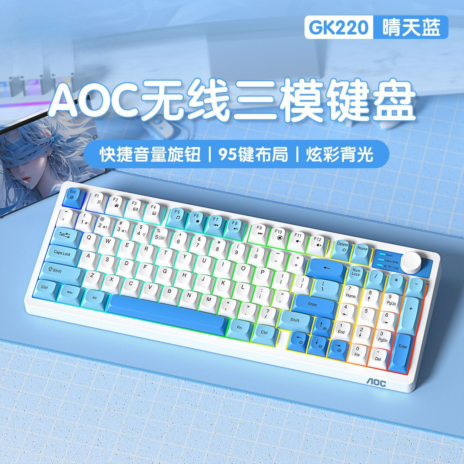• 95키-써니 블루 [3모드/RGB 조명 효과]
