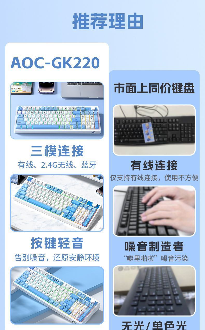 GK220 3 모드 키보드 유선 무선 블루투스 기계적 느낌 게임 사무실 노트북 마우스 세트 키보드스토어 가기