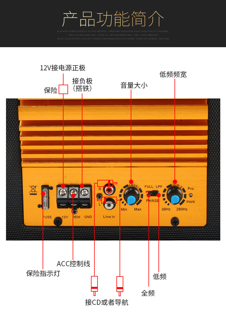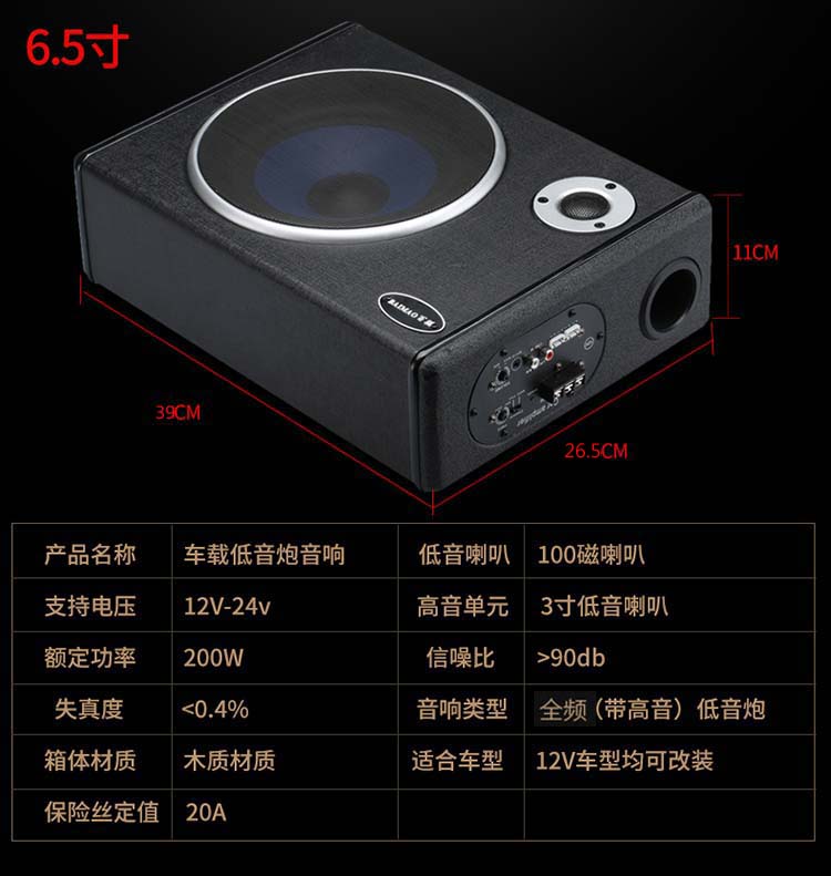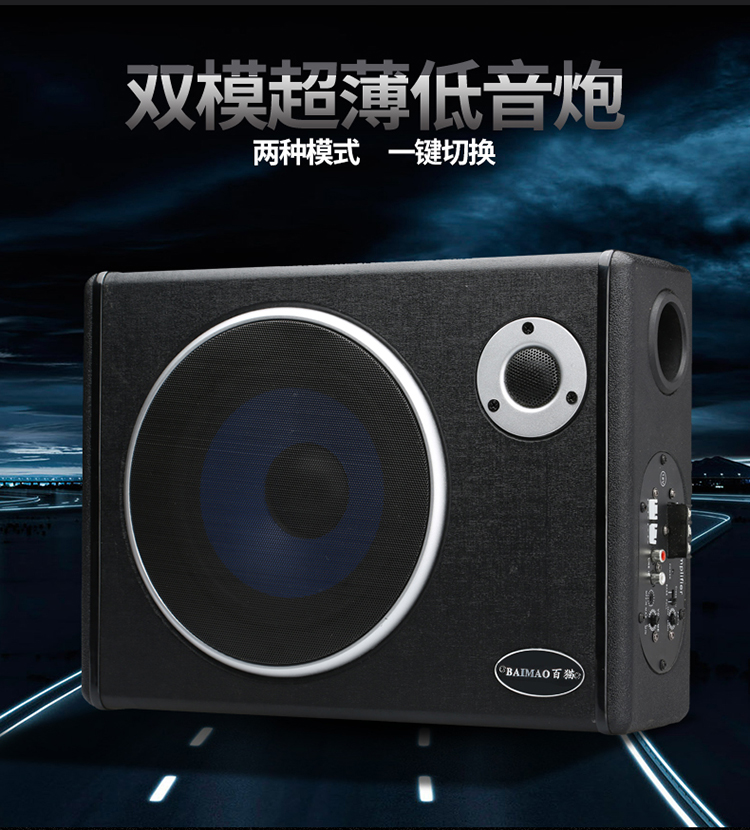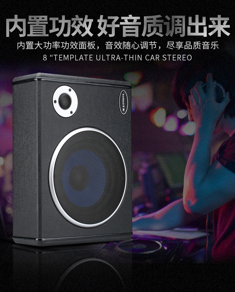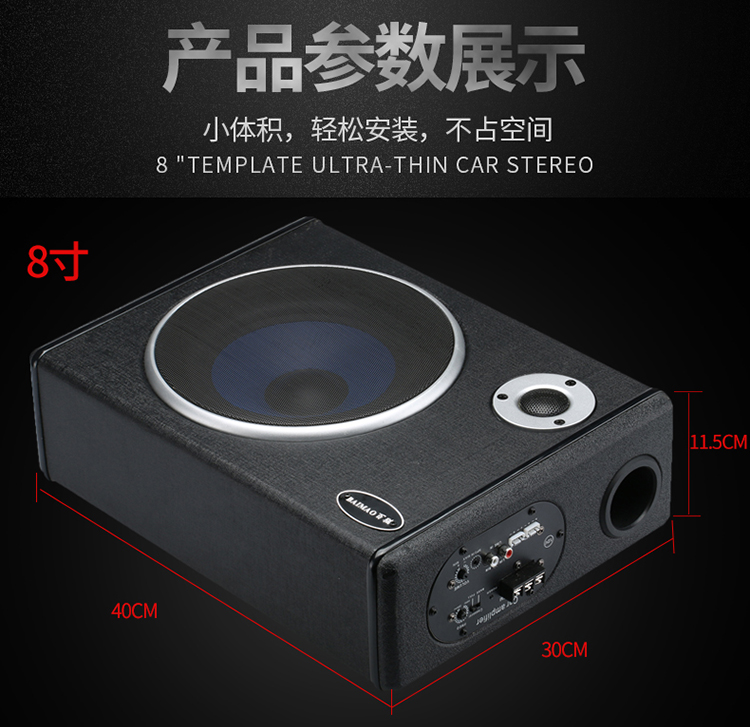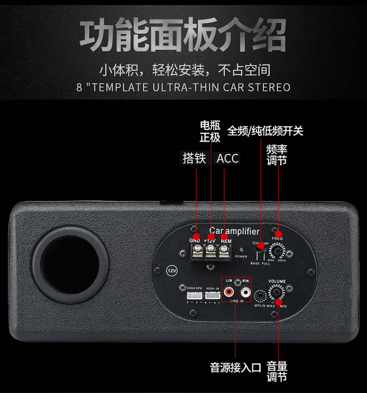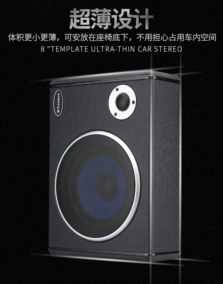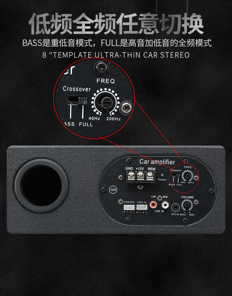 6寸8寸超薄车载低音炮,12V24V汽车专用,不可以家用,其他功能没有的.只适合车CD导航连接原车同步。可以调节低高音,纯低音调两种模式。
