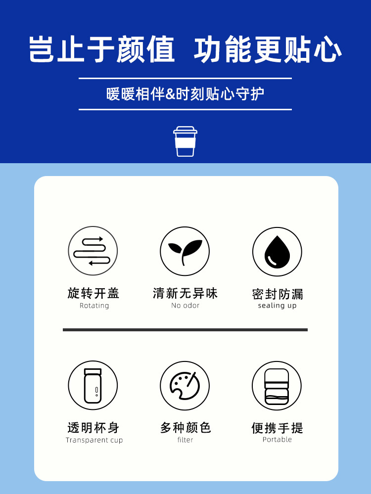심플한 차와 물 분리 컵, 차 분리기가 있는 고급스러운 휴대용 컵, 인스 스타일 여름 핸디 컵, 학생 선물스토어 가기