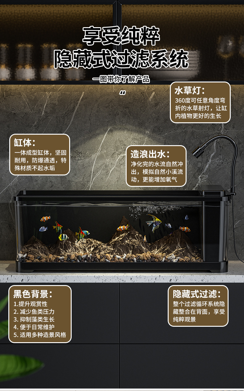거실 수조 필터링 산소 발생기 2025 새로운 게으른 데스크탑 생태 배경 스티커 측면 필터링 스트림 탱크스토어 가기