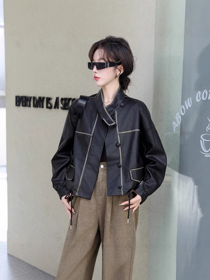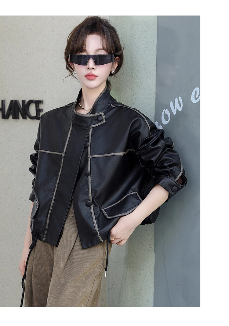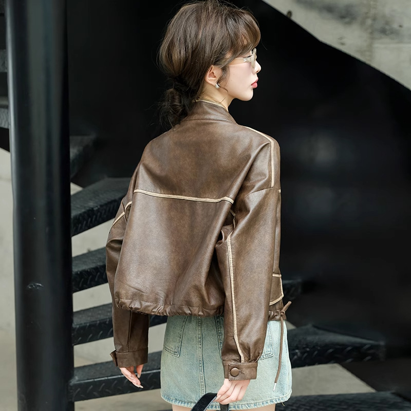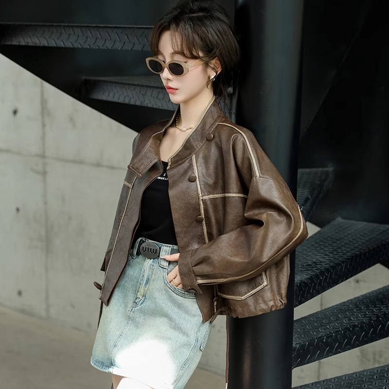 Haining 정품 가죽 자켓 여성 짧은 대형 봄, 가을 새로운 느슨한 디자인 미국 복고풍 오토바이 자켓스토어 가기