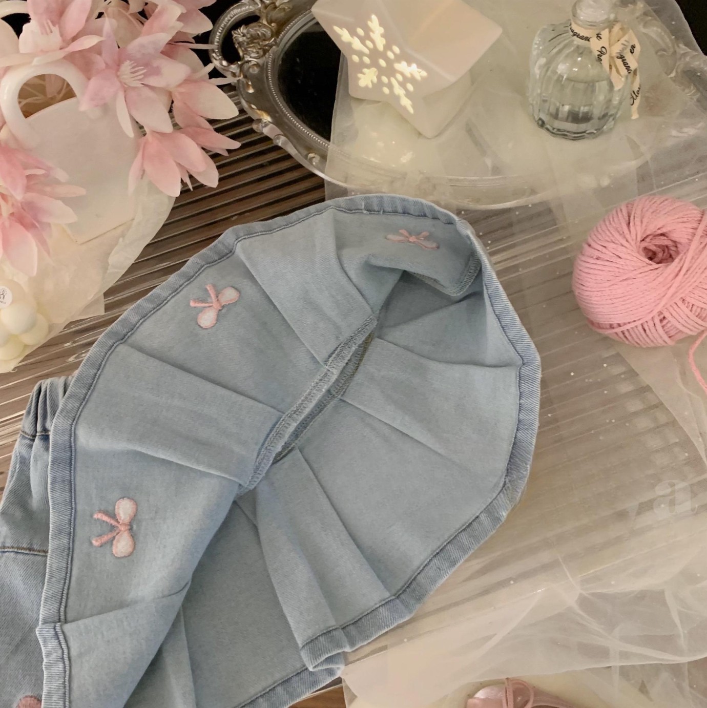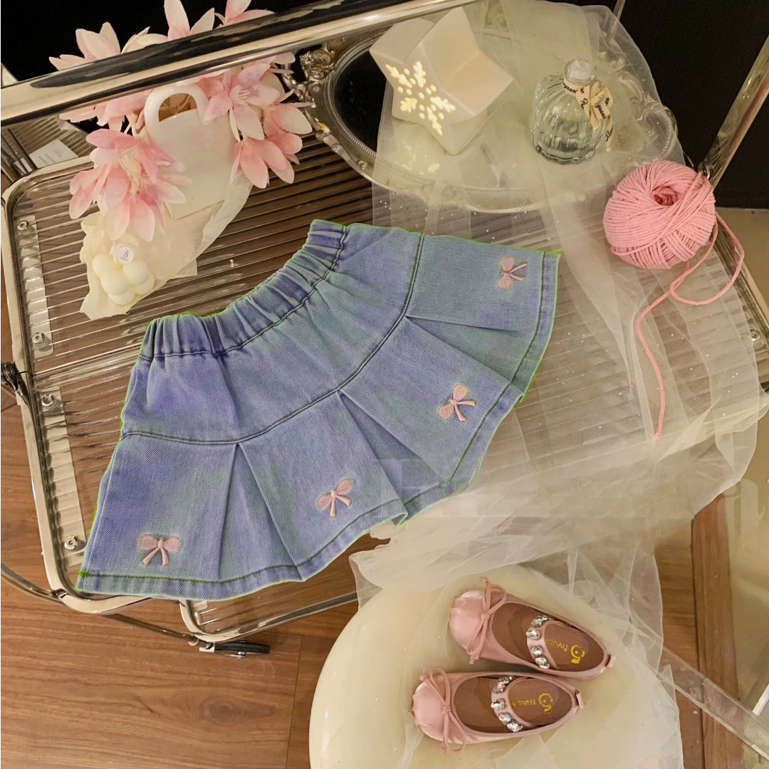 새롭고 달콤하고 활용도가 높은 플리츠 스커트, 여름 리본 자수, 트렌디한 데님 스커트, 패셔너블한 한국식 스커트스토어 가기
