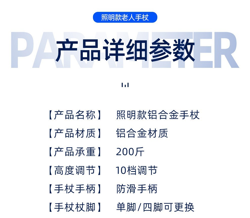 노인 및 장애인을 위한 조명이 포함된 새로운 국경 간 알루미늄 합금 지팡이, 보행 보조 지팡이, 재활 보조 지팡이, 단일 지팡이