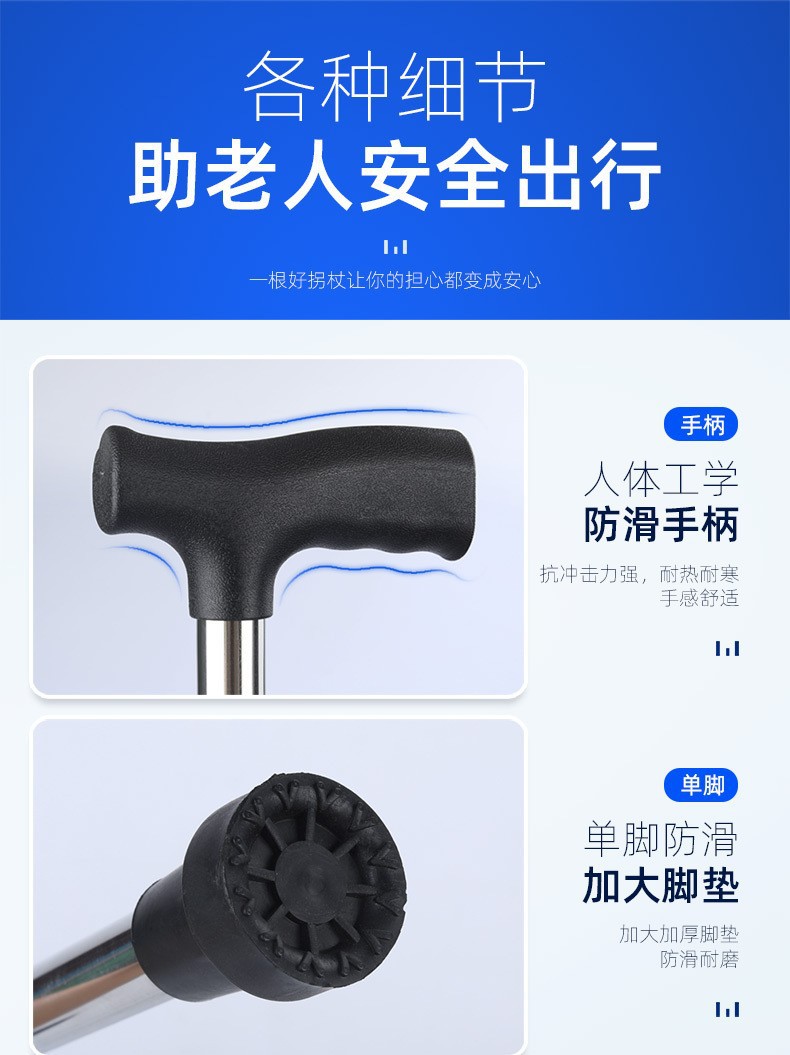 노인 및 장애인을 위한 조명이 포함된 새로운 국경 간 알루미늄 합금 지팡이, 보행 보조 지팡이, 재활 보조 지팡이, 단일 지팡이스토어 가기