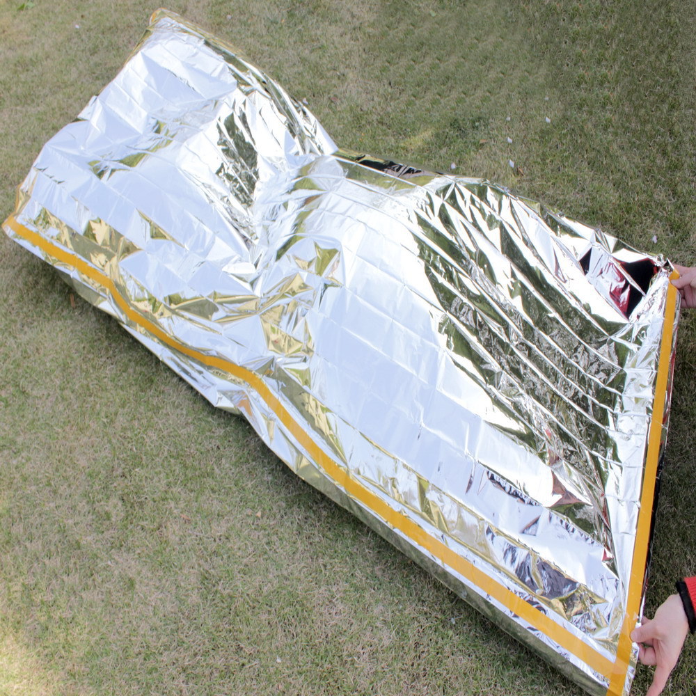 야외 비상 구급 담요 단열 및 단열 생존 담요 비상 따뜻한 실버 침낭 비상 침낭