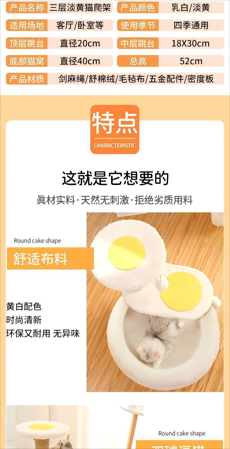 • 고양이 등산 프레임 - 계란 노른자 - 새끼 고양이 [업그레이드 모델 - 탈부착 및 세탁 가능한 면 둥지]