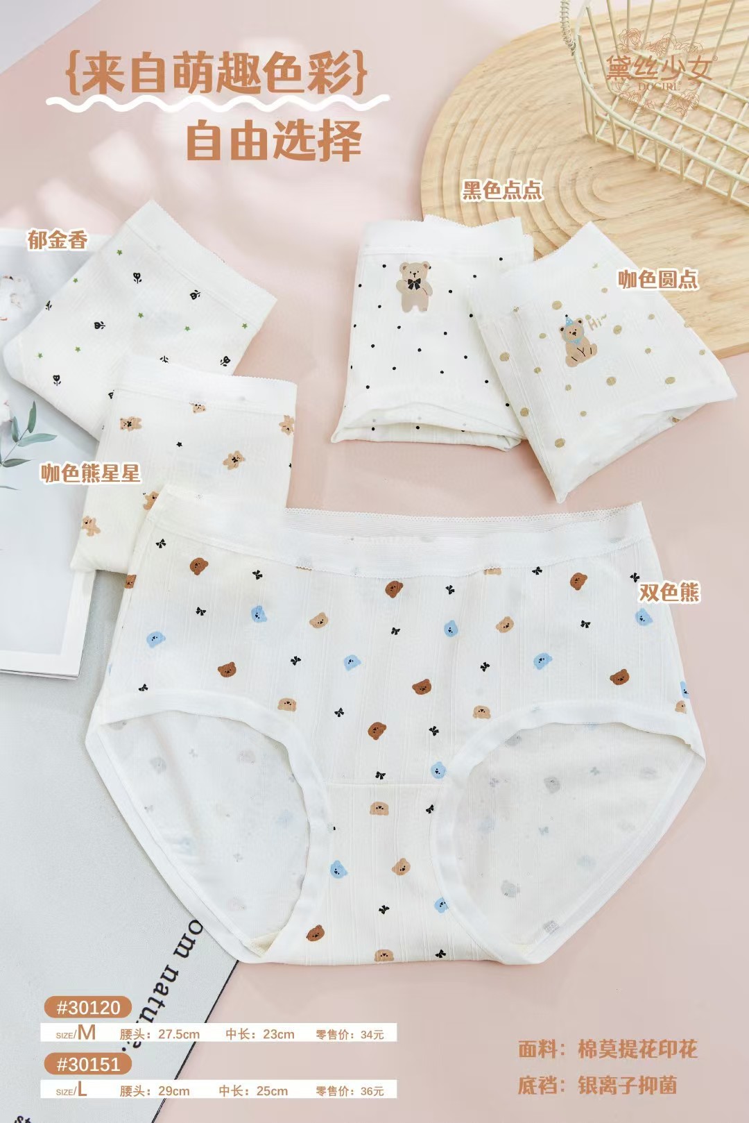 데이지 소녀 모달 베이비 코튼 스위트 폴카 도트 속옷 여성용 편안하고 통기성이 뛰어난 중간 허리 원활한 여성용 팬티스토어 가기
