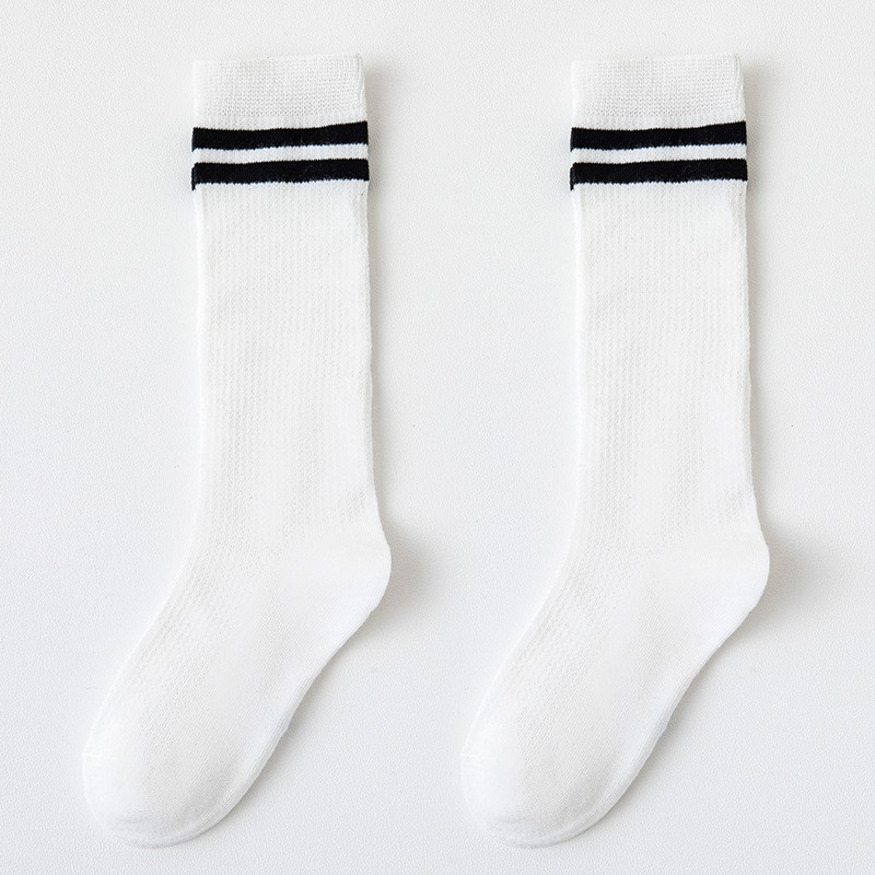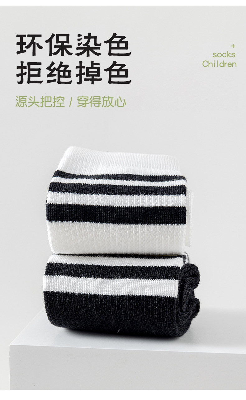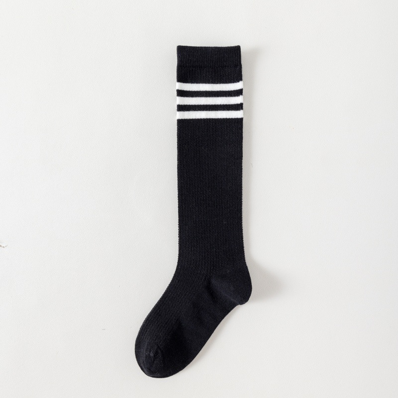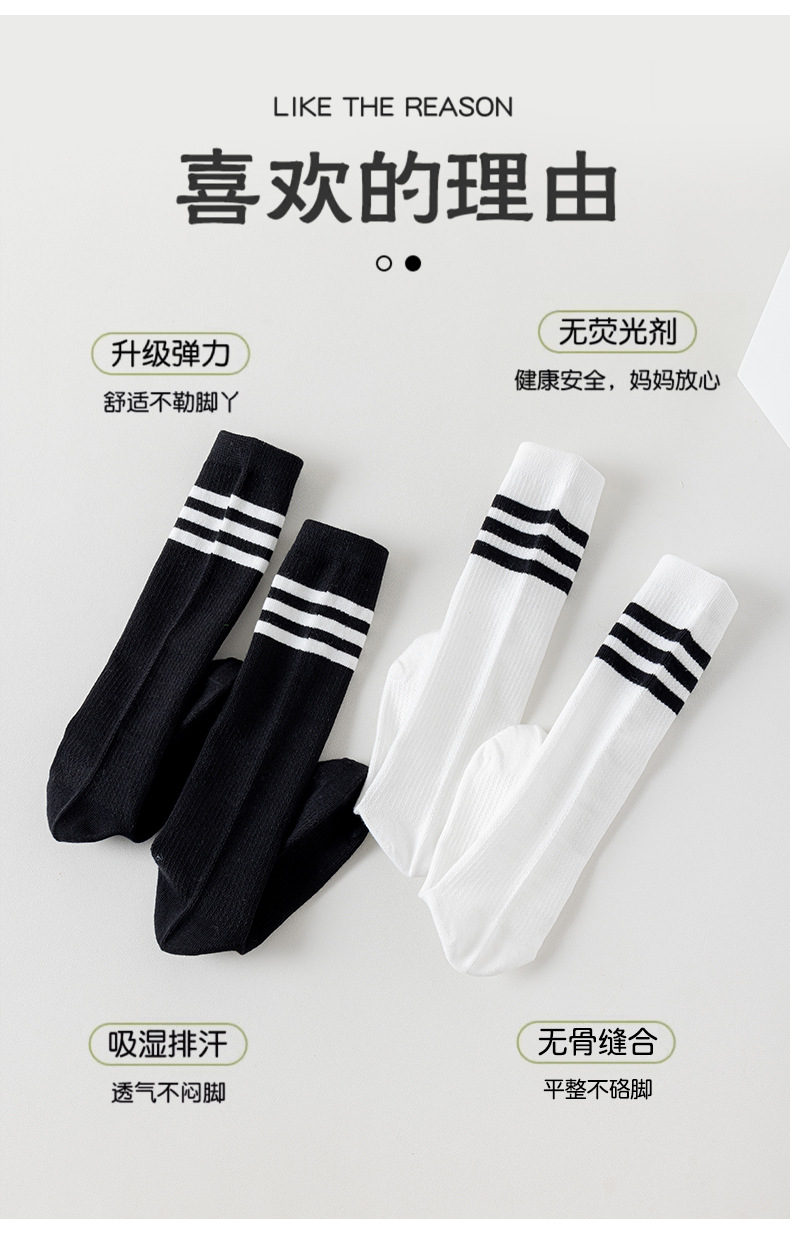 여름 얇은 어린이 양말 면 메쉬 통기성 종아리 양말 대학 스타일 흑백 세 줄무늬 뼈없는 학생 양말