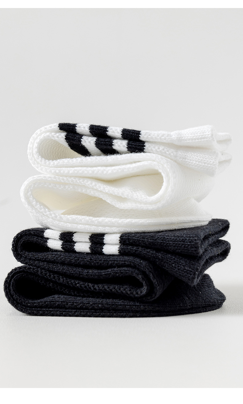 여름 얇은 어린이 양말 면 메쉬 통기성 종아리 양말 대학 스타일 흑백 세 줄무늬 뼈없는 학생 양말스토어 가기