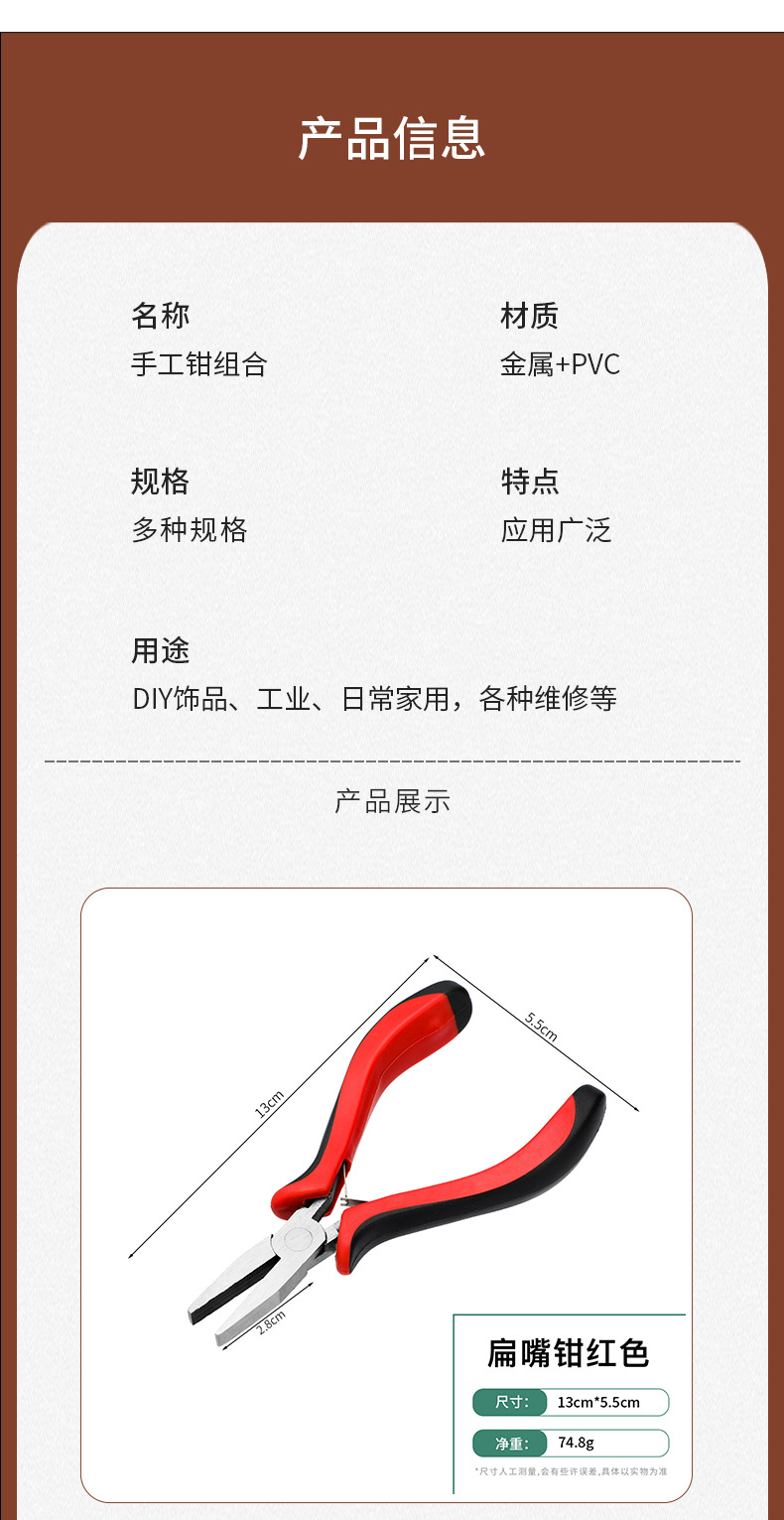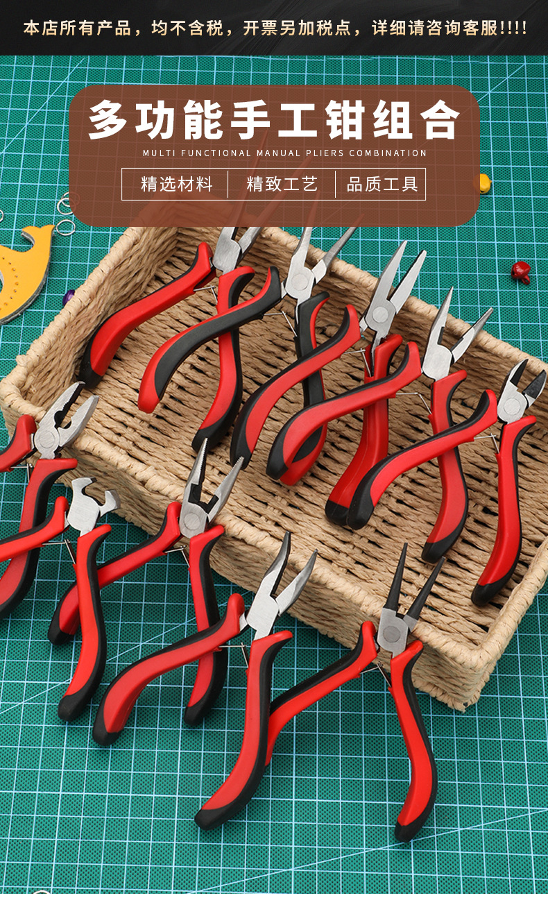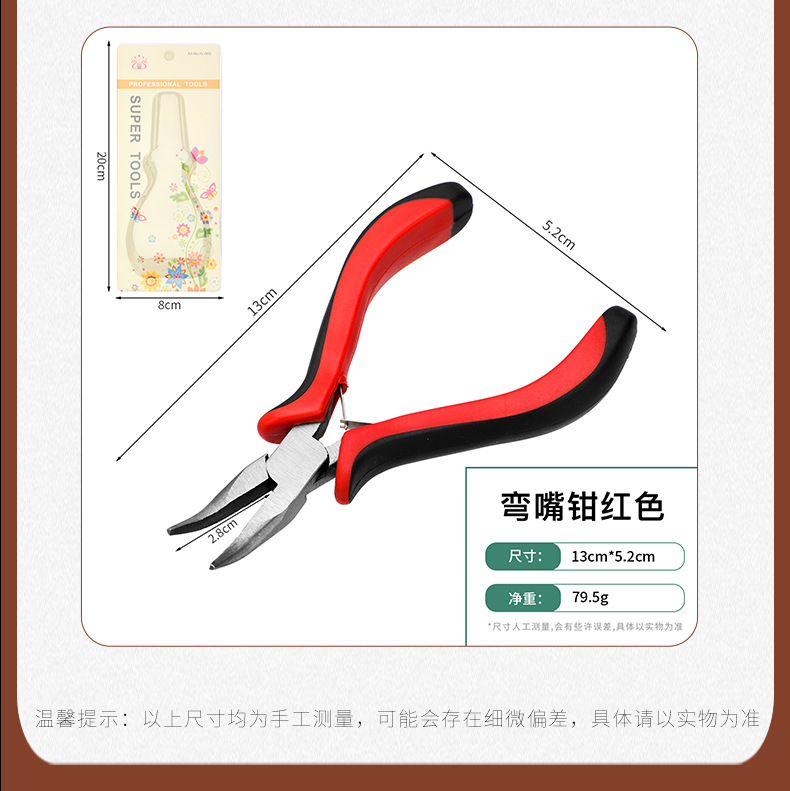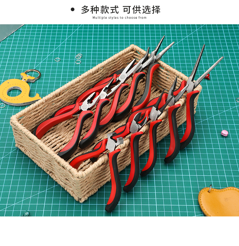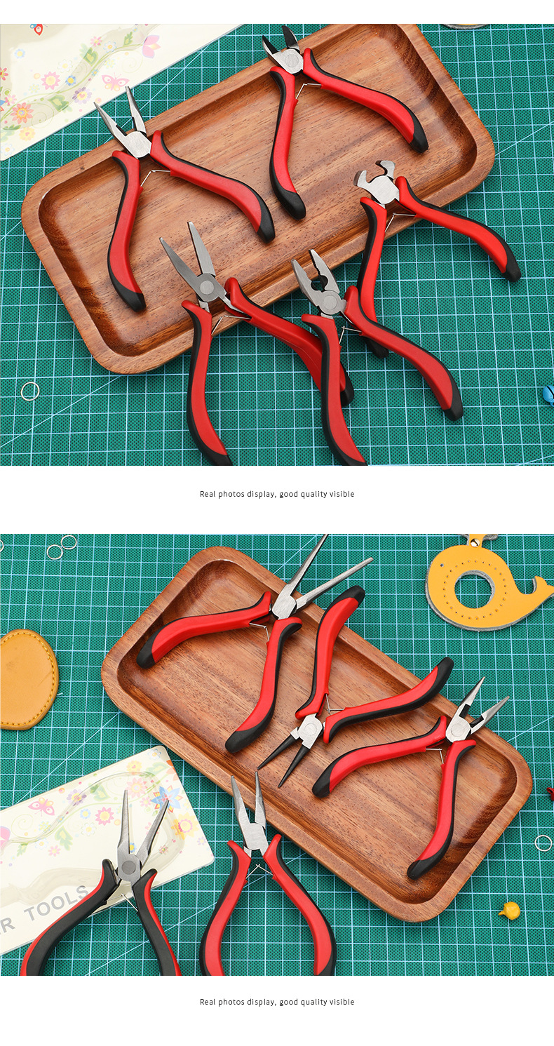 미니 빨간색과 검은색 플라스틱 담그기 펜치 diy 바늘코 펜치 대각선 바이스 펜치 곡선 코 펜치 플랫 탑 커팅 펜치 이빨 없음스토어 가기