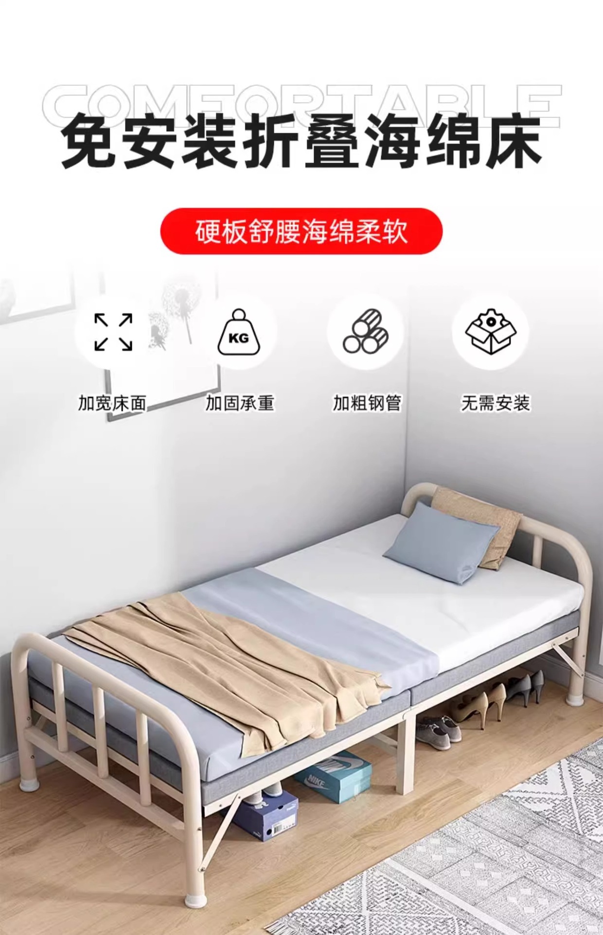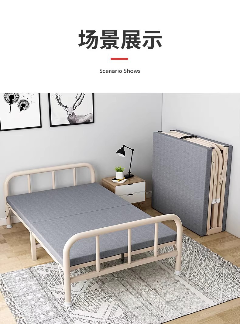 맞춤형 성인용 접이식 침대 홈 렌탈 하우스 기숙사 싱글 침대 간단하고 경제적인 점심 시간 철제 침대 단단한 침대스토어 가기
