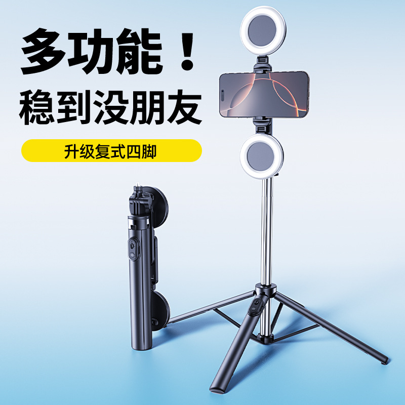 새로운 R9 다기능 셀카 스틱 스테인레스 스틸 라이브 방송 바닥 스탠드 4 다리 삼각대 텔레스코픽 휴대용 사진 촬영 스탠드