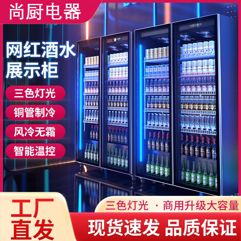 상업용 인터넷 연예인 음료 디스플레이 캐비닛 양문형 맥주 음료 냉장고 공냉식 상업용 바 3 도어 냉장고 냉동고