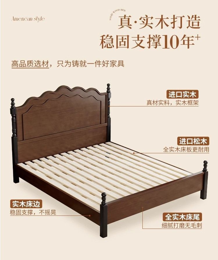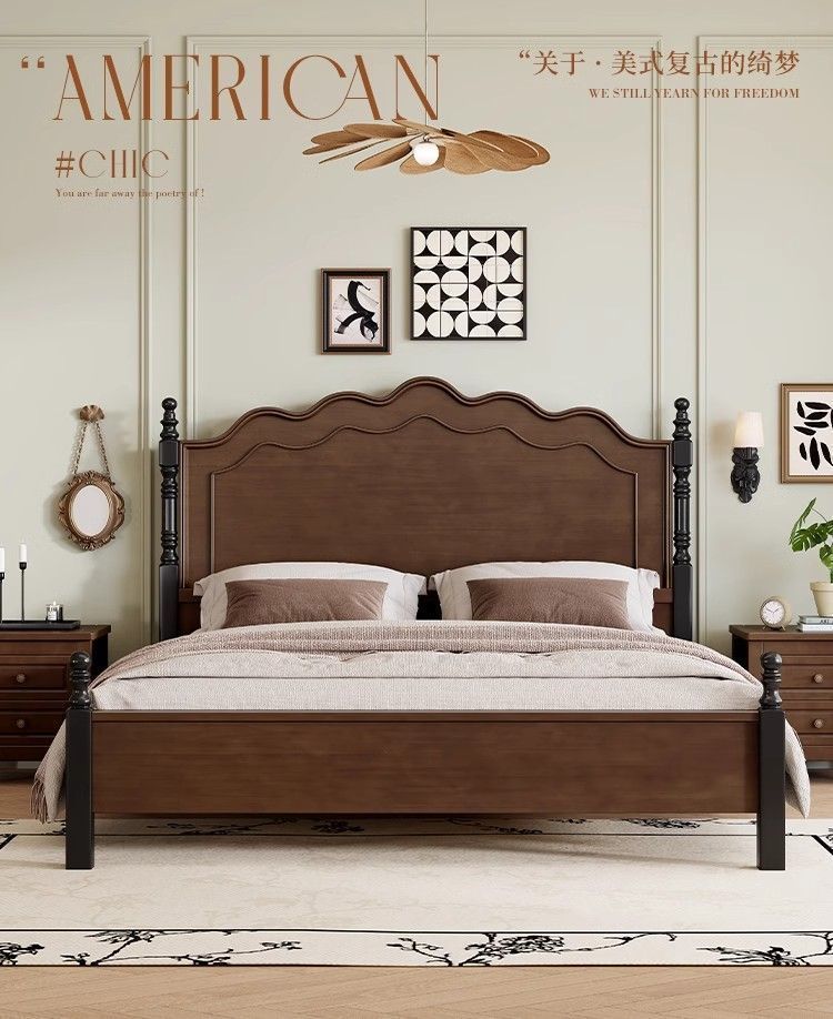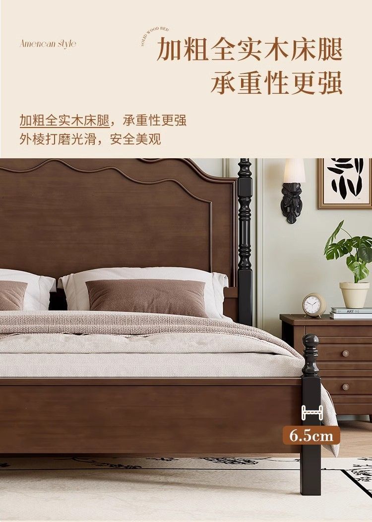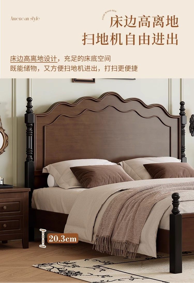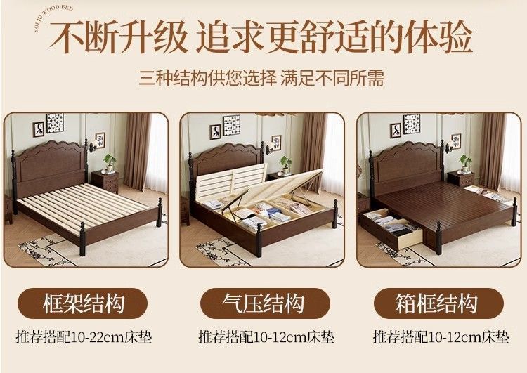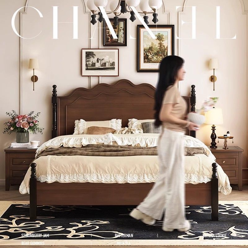 프렌치 레트로 침대, 원목 침대, 모던 심플 1.8m 더블 침대, 중세 스타일 1.5m 마스터 침실 수납 침대