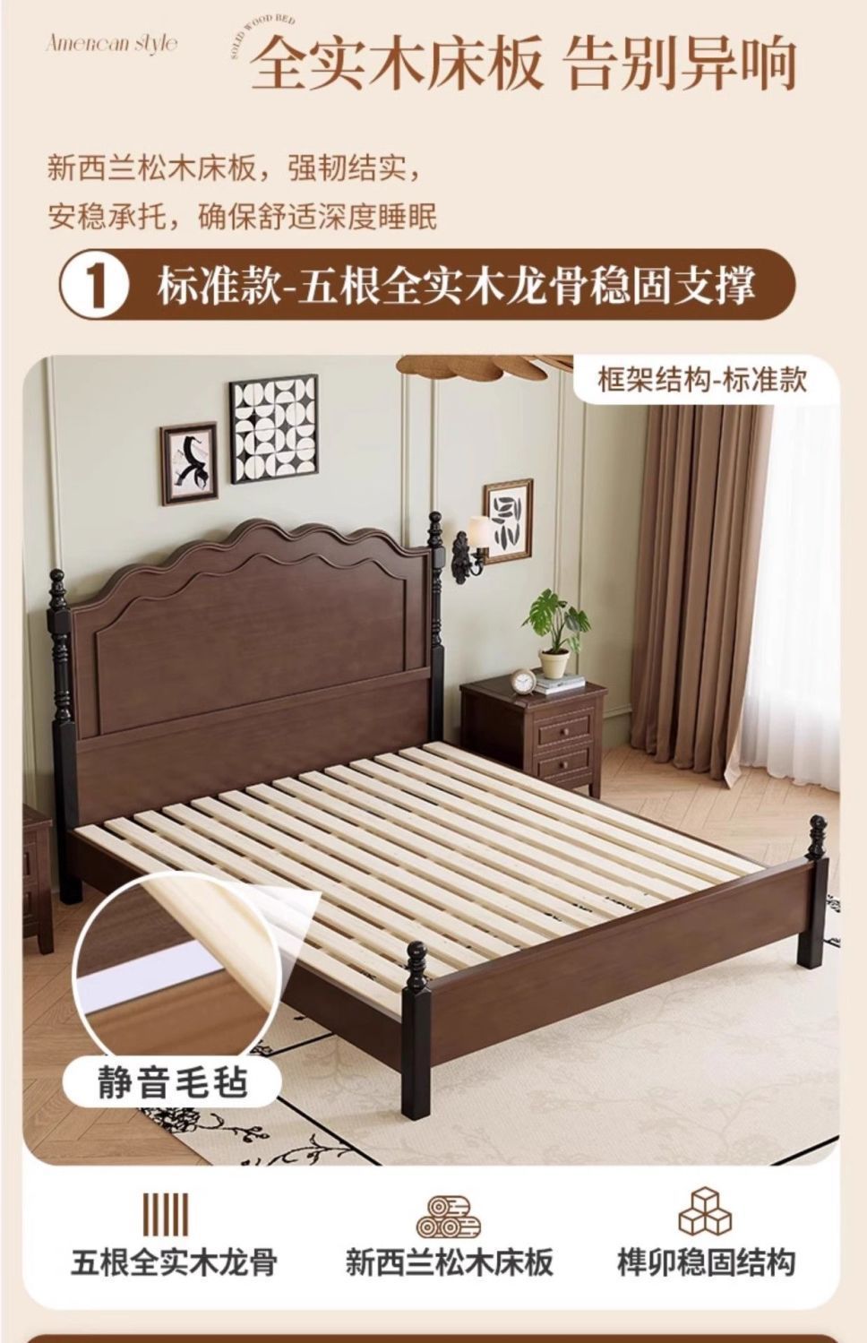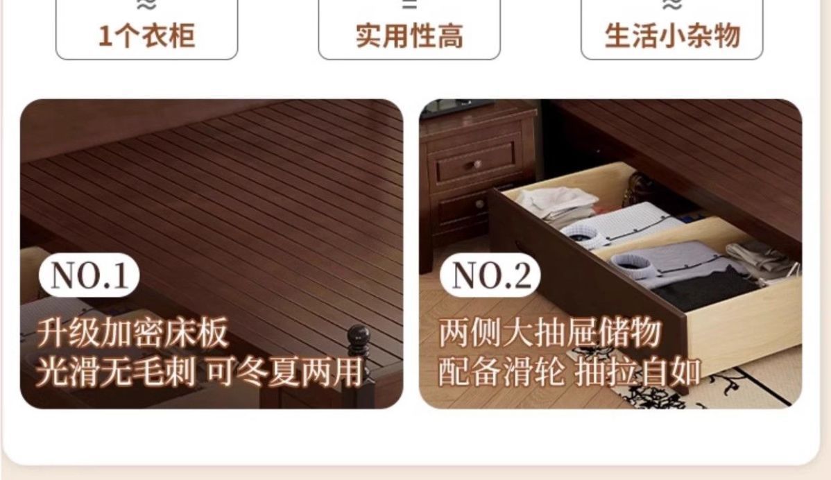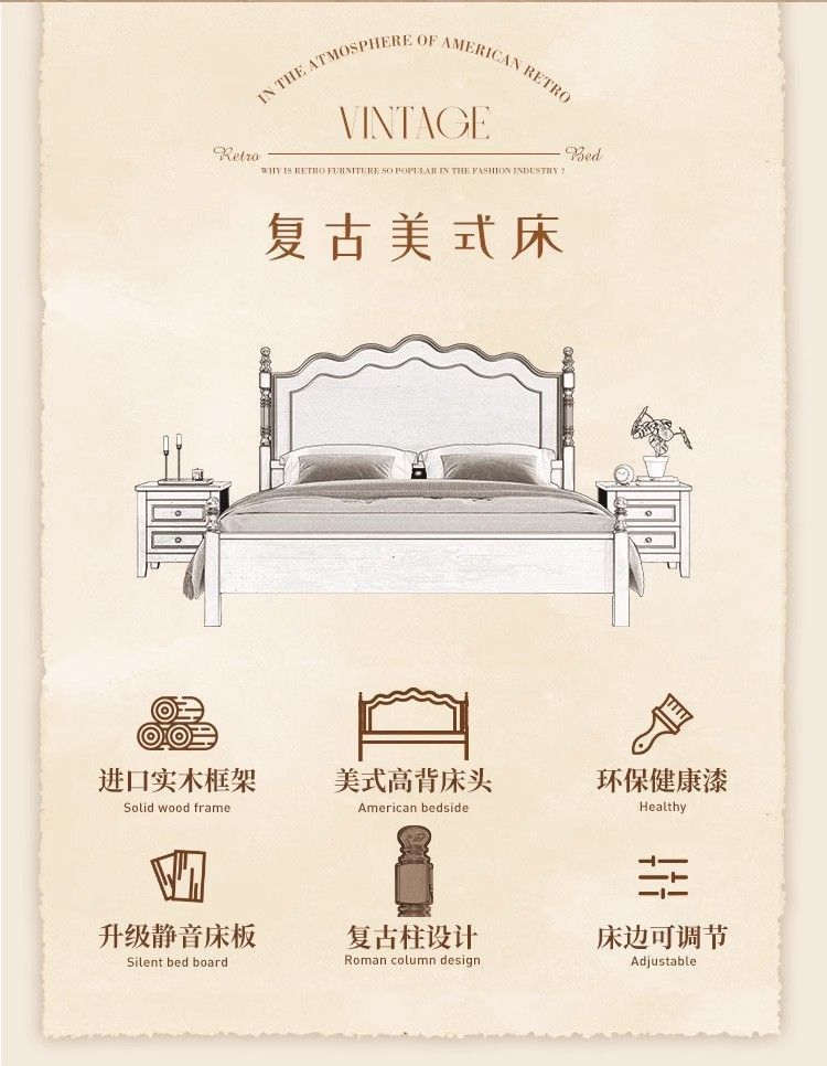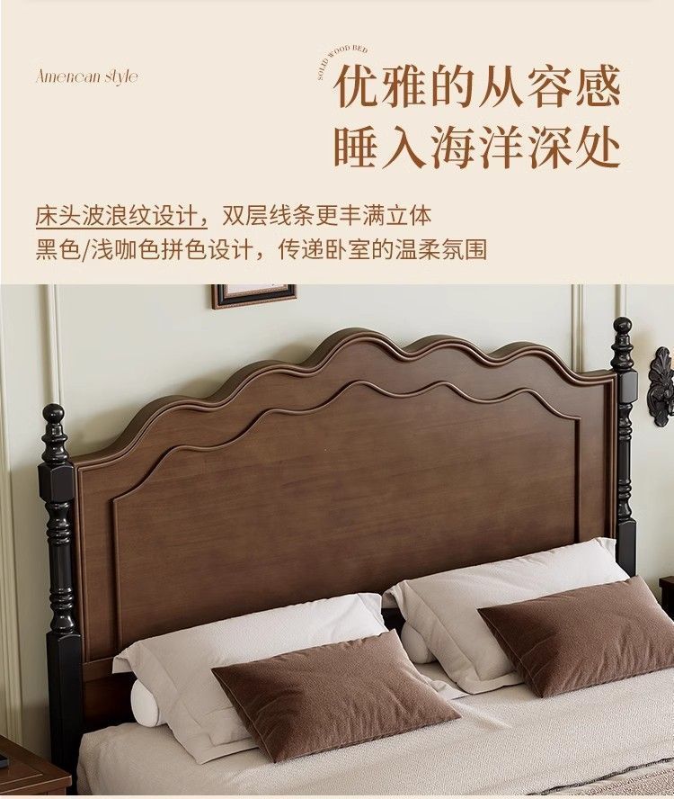 프렌치 레트로 침대, 원목 침대, 모던 심플 1.8m 더블 침대, 중세 스타일 1.5m 마스터 침실 수납 침대