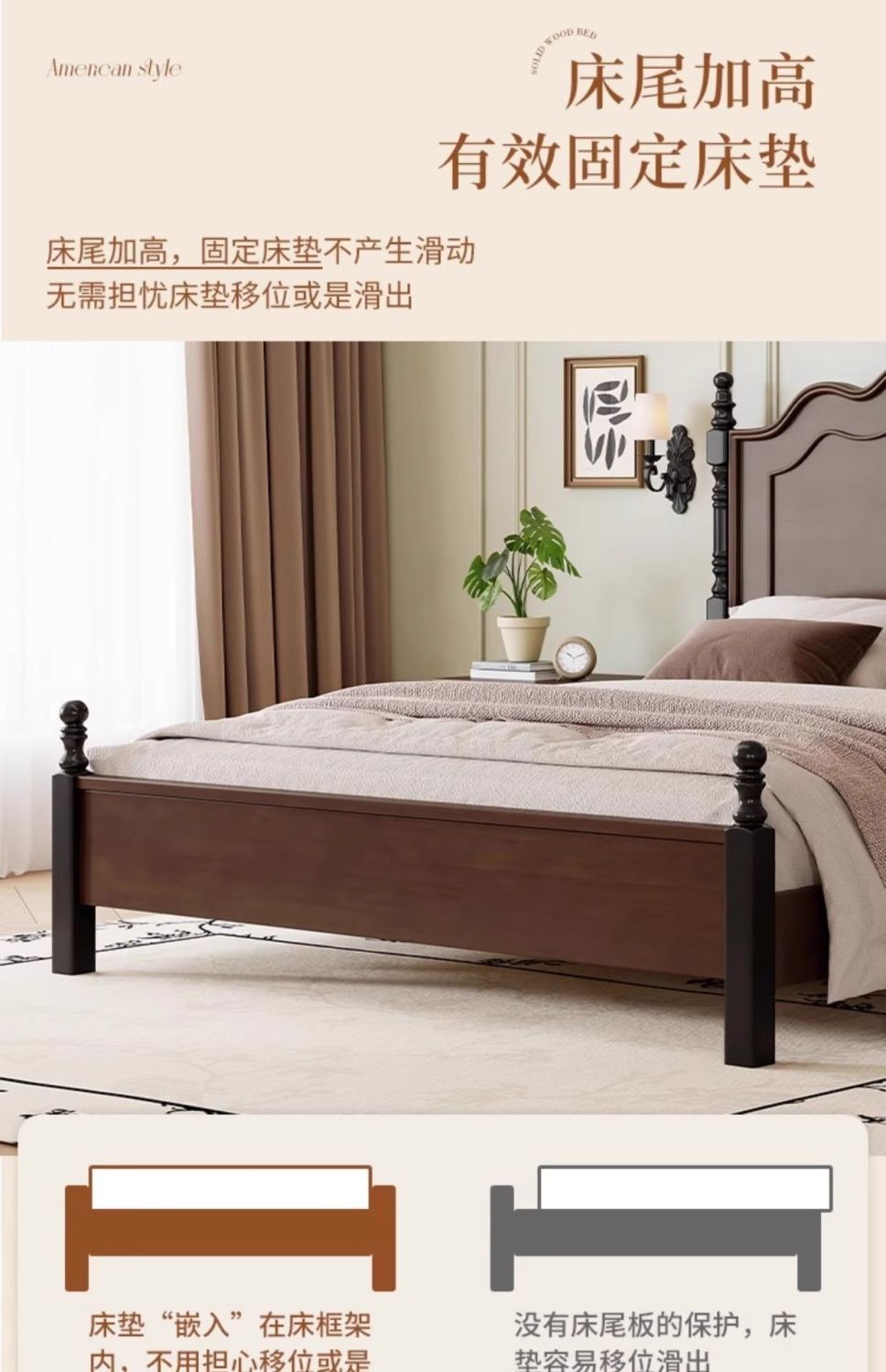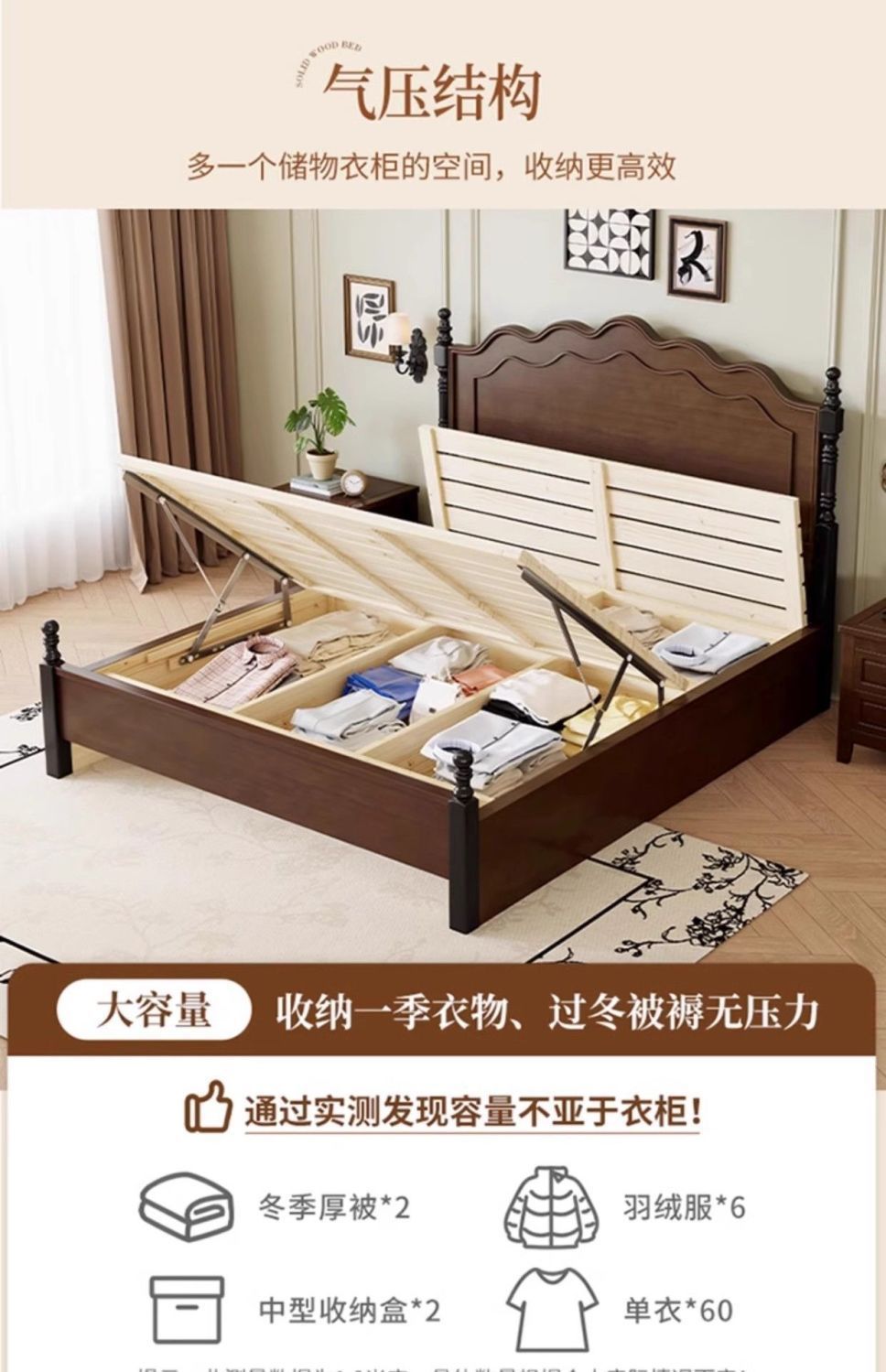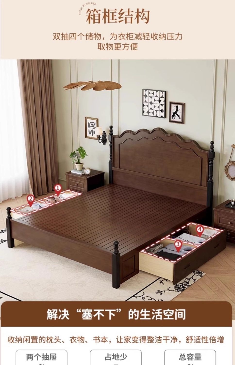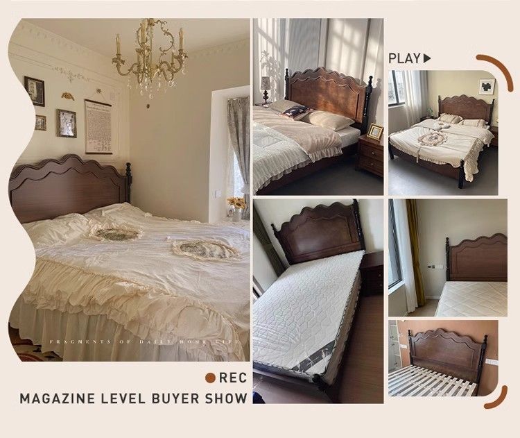 프렌치 레트로 침대, 원목 침대, 모던 심플 1.8m 더블 침대, 중세 스타일 1.5m 마스터 침실 수납 침대스토어 가기