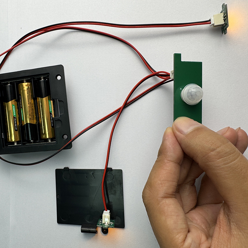 人接近感应器1米范围,开始亮灯,电池由3颗5号电池供电(出厂不配电池,请客户自行购买),电池盖子上有开关。