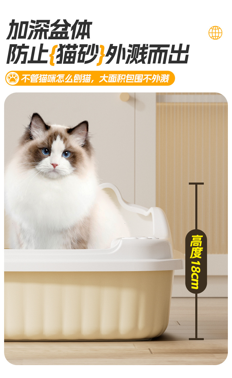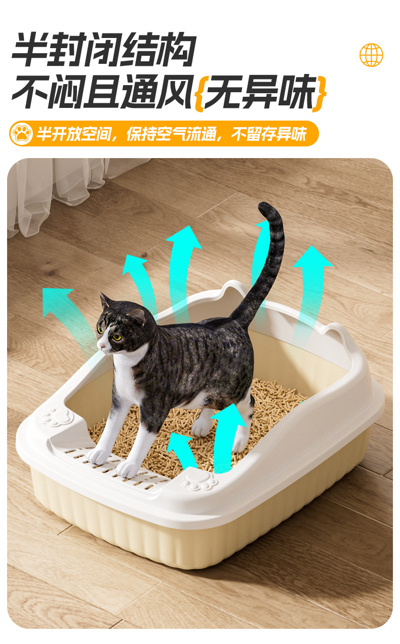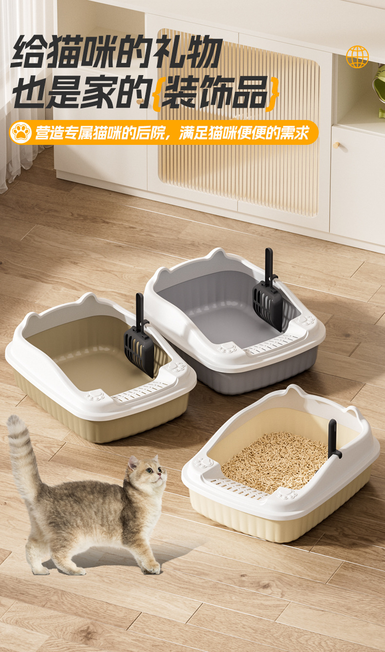 대형 오픈형 고양이 화장실, 반밀폐형 높이가 있는 고양이 화장실, 튐 방지 고양이 화장실, 애완용품