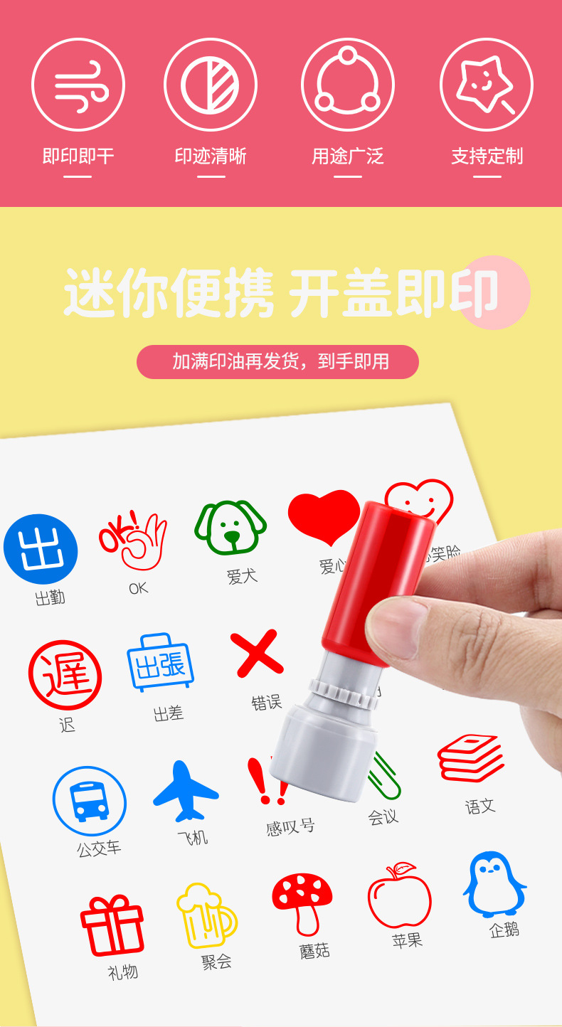 미니 귀여운 어린이 핸드북 스탬프, 감광성 장식 스탬프, 만화 핸드북 체크인 패턴, 휴대용 보상 스탬프