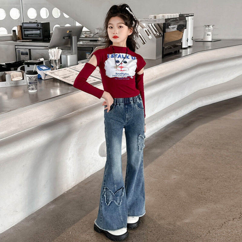 크로스보더 여아 나팔바지 바지 2025 봄 가을 신상 청바지 아동 스타일 중대형 아동 슬림 봄옷스토어 가기
