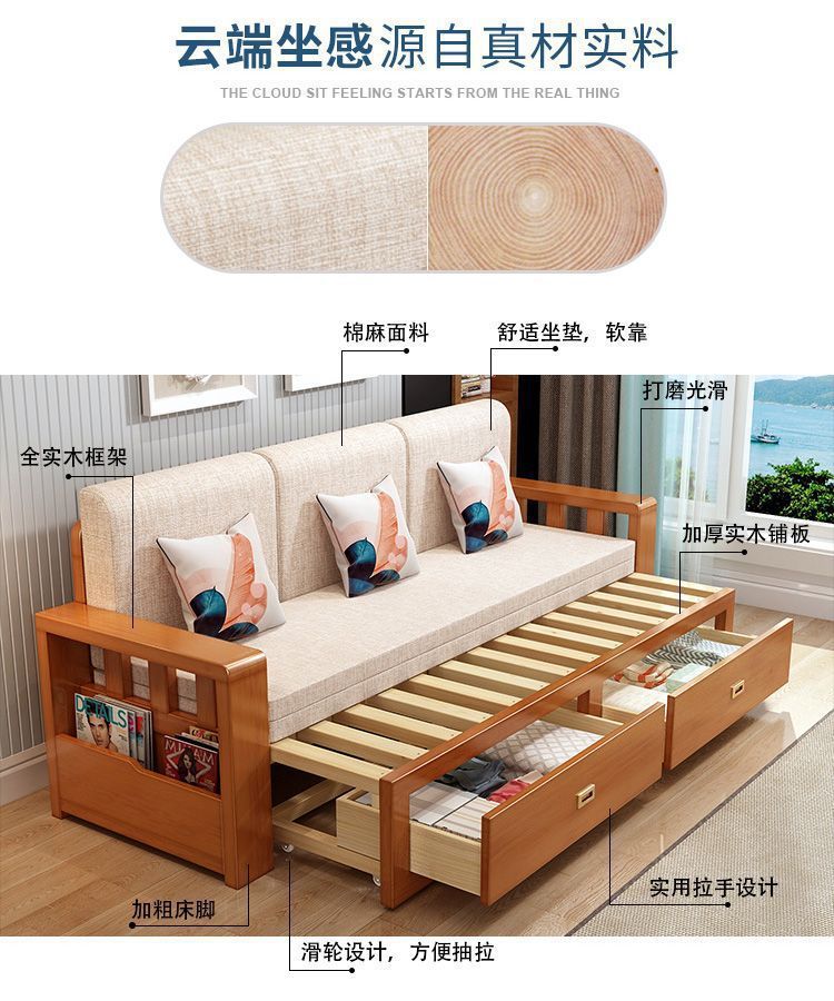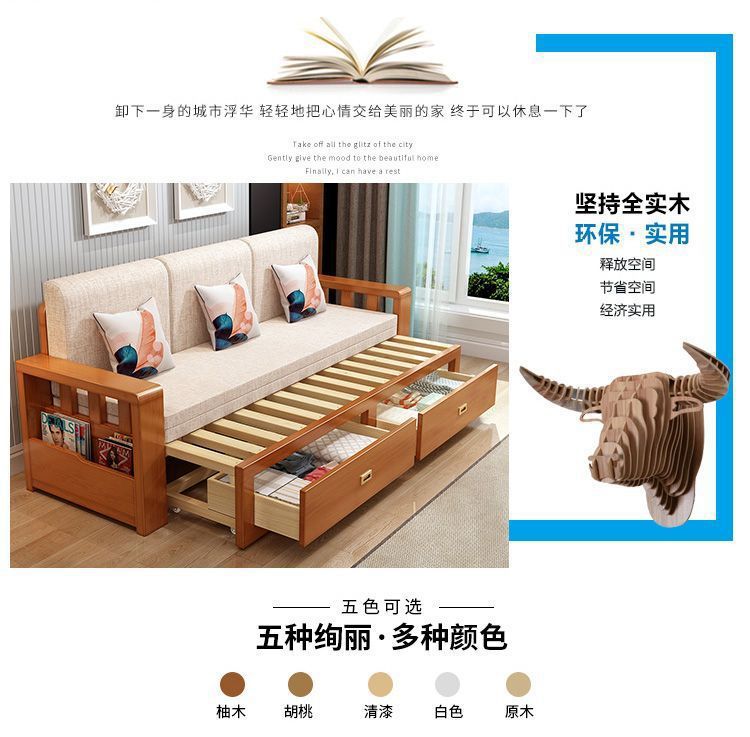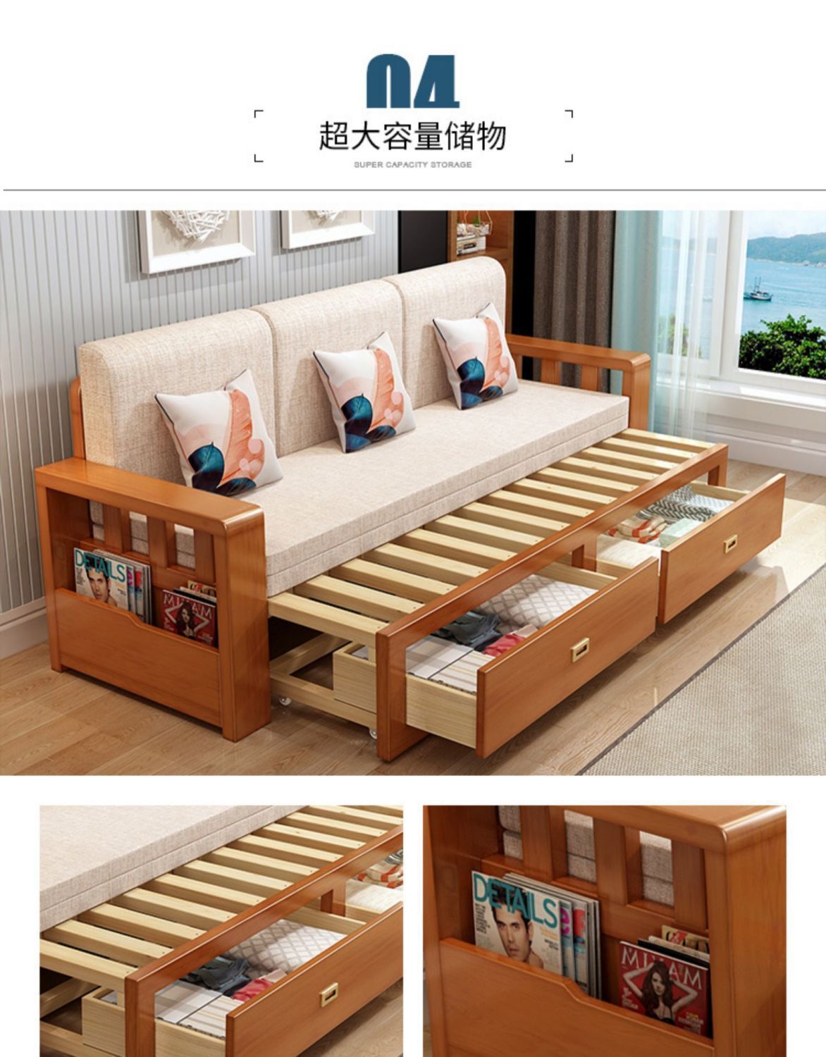 소파 베드 일체형 접이식 다기능 싱글 텔레스코픽 일체형 거실 원목 접이식 침대 소파 원목