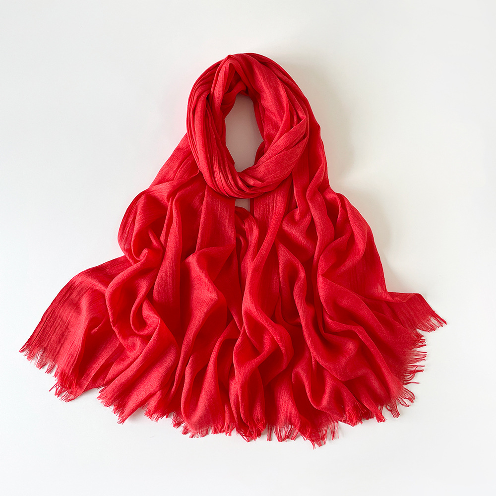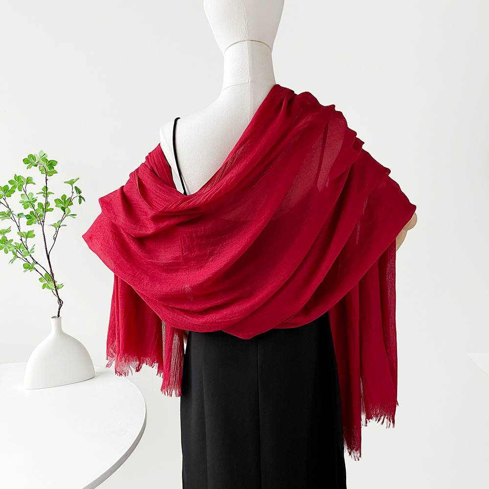 민족풍 단색 스카프 숄 패션 예술적 면마 스카프 레드 실크 스카프 여성용 사막 여행 숄