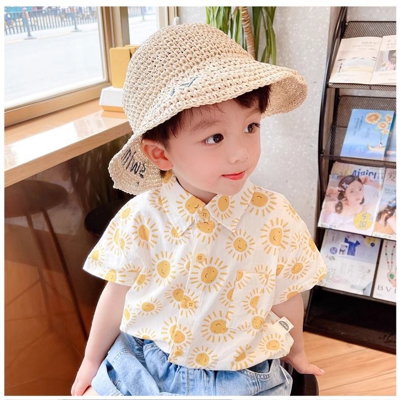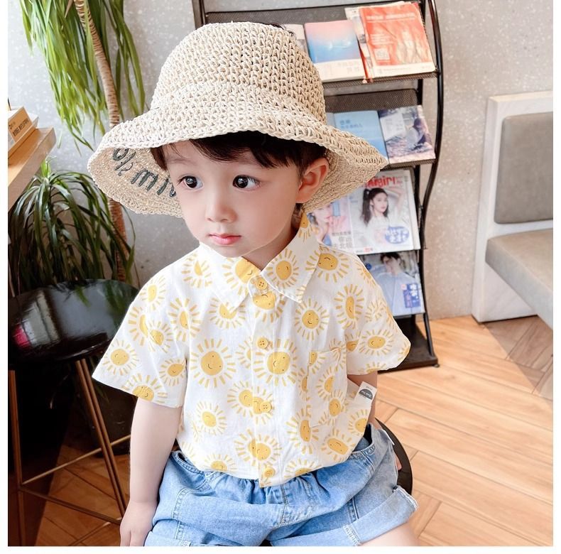 소년 라펠 셔츠 베이비 탑 재킷 얇은 리조트 스타일 아동 여름 작은 태양 반팔 셔츠스토어 가기