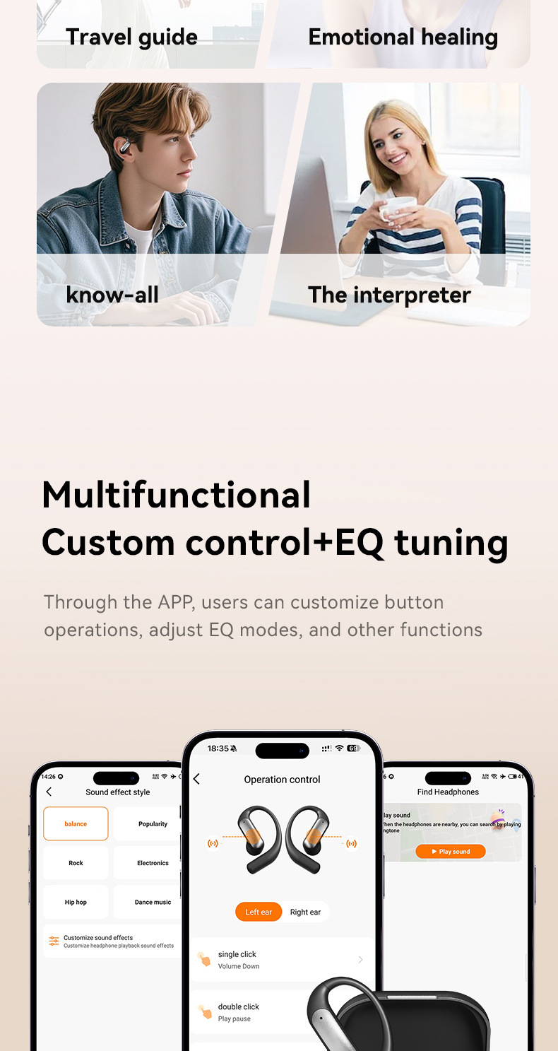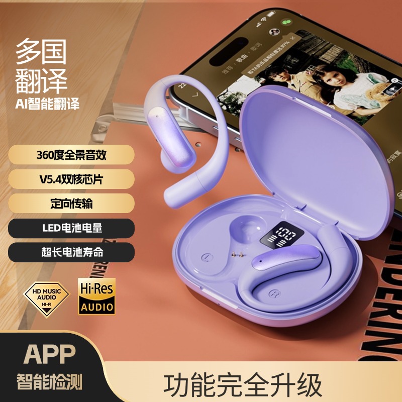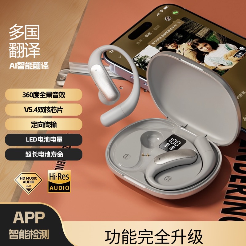 2025 새로운 AI 지능형 번역 헤드셋 M122 블루투스 헤드셋 귀에 걸치는 이어폰 형 OWS 무선 스포츠스토어 가기