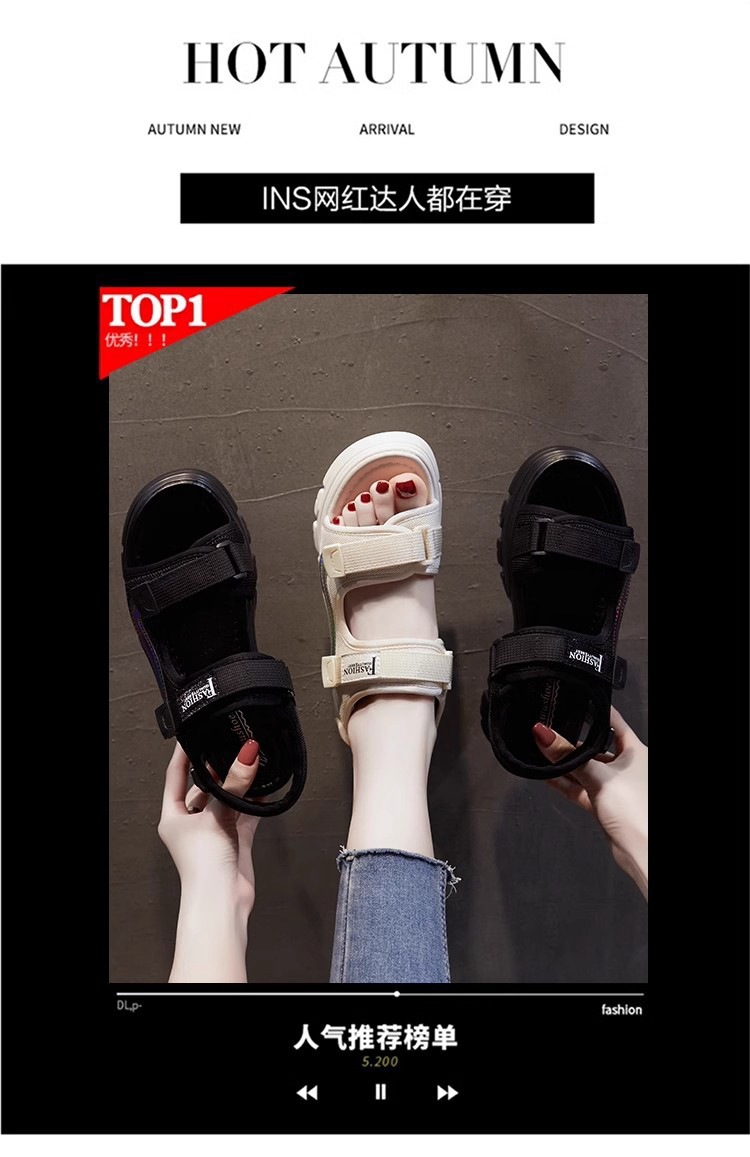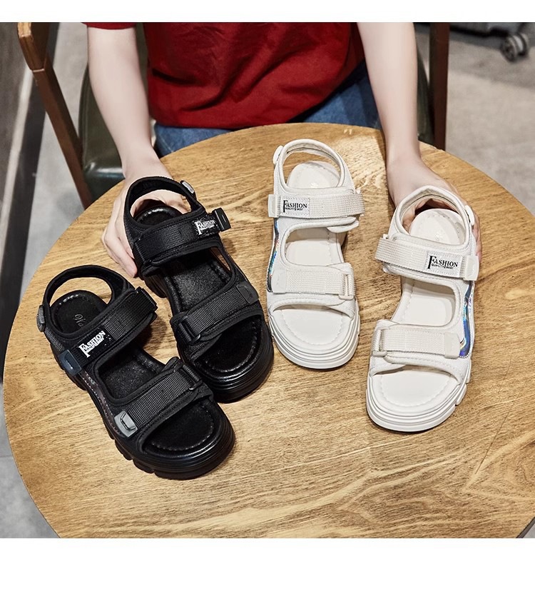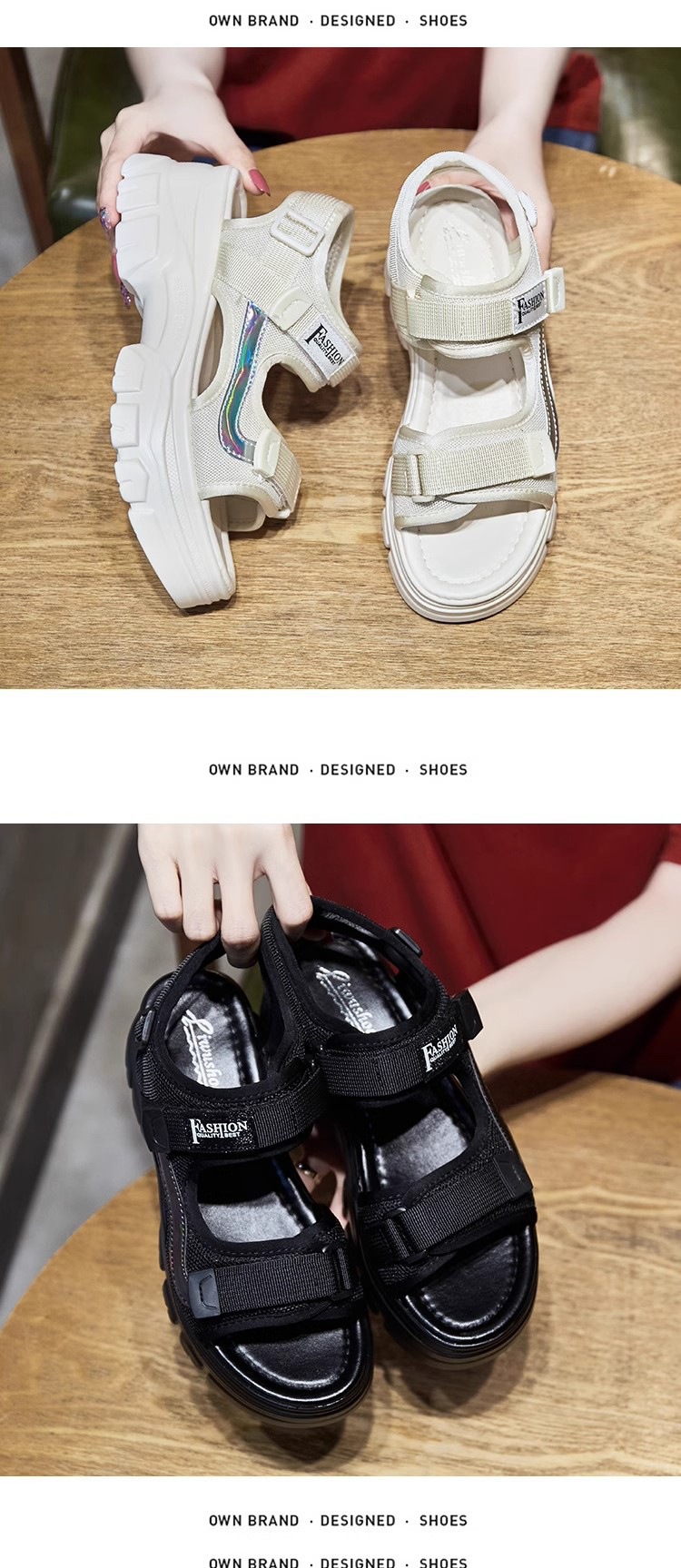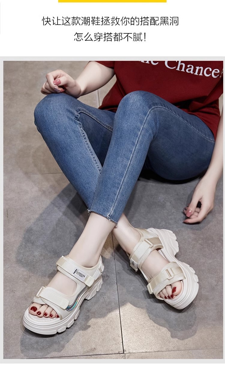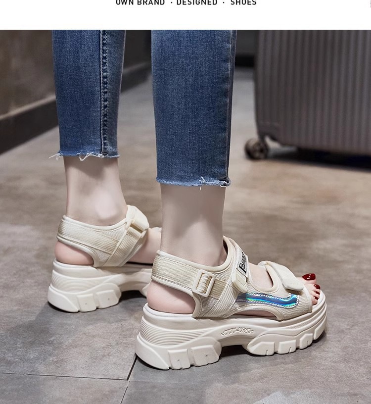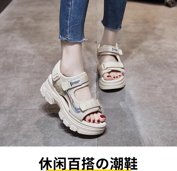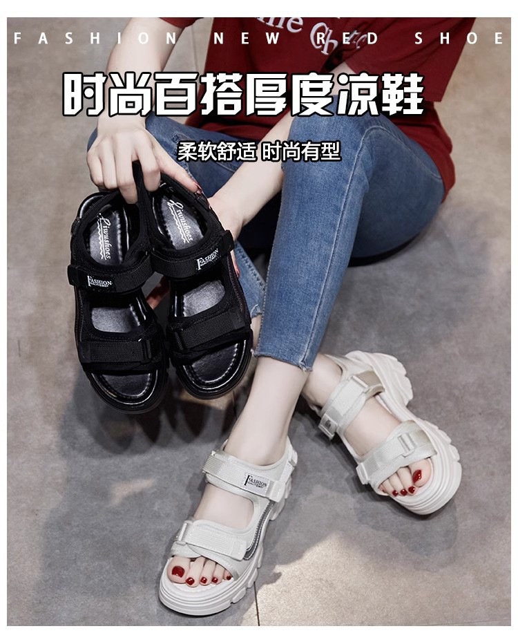 厚底运动凉鞋女2022夏季新款魔术贴百搭露趾平底网红潮休闲沙滩鞋