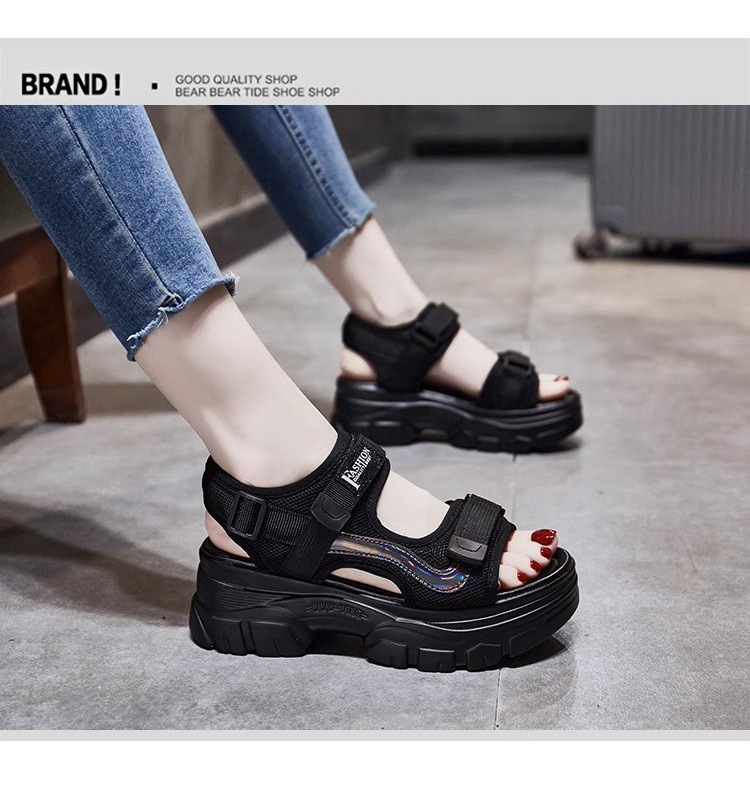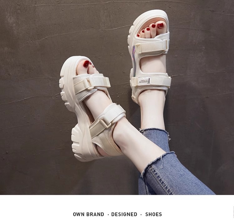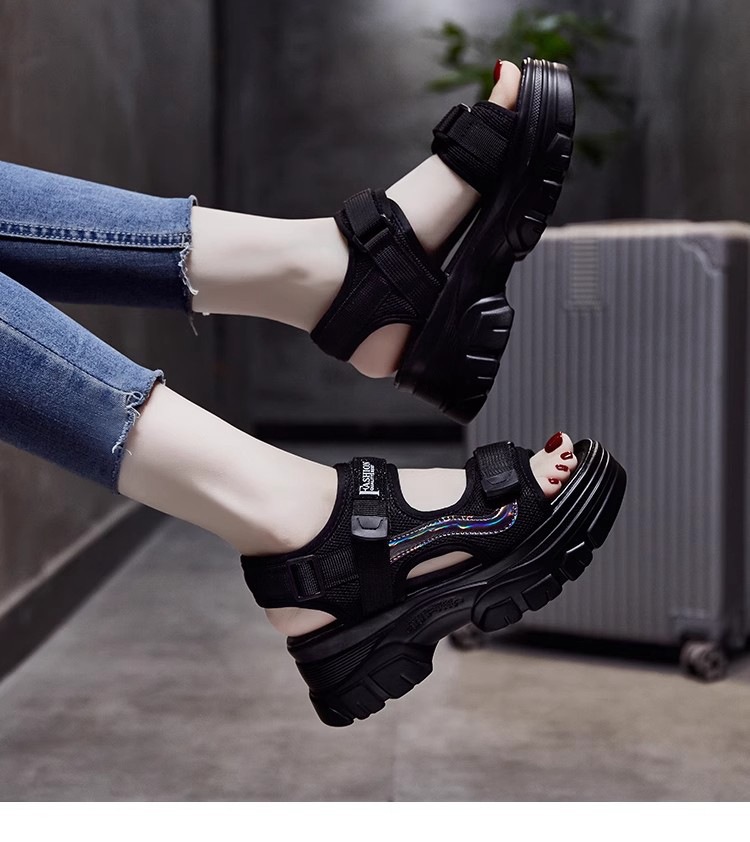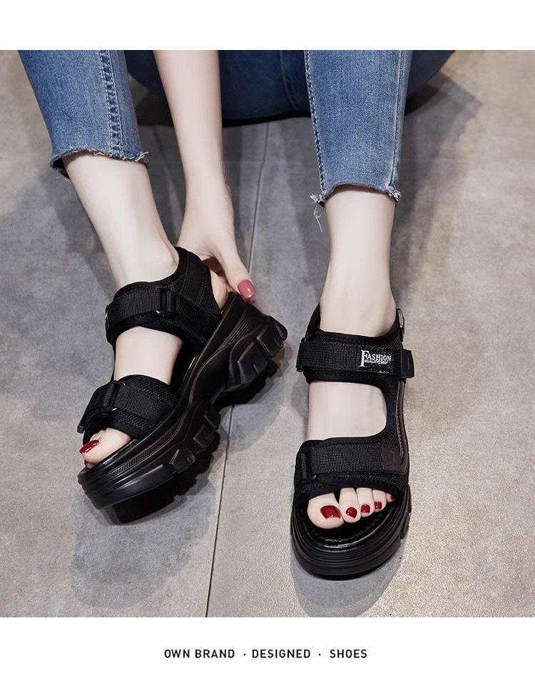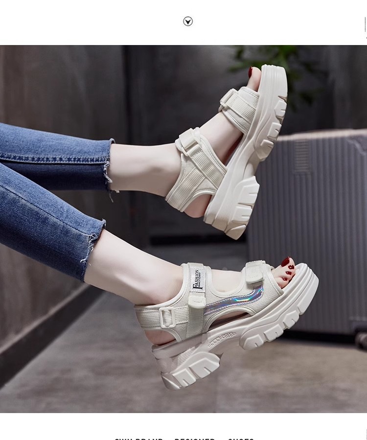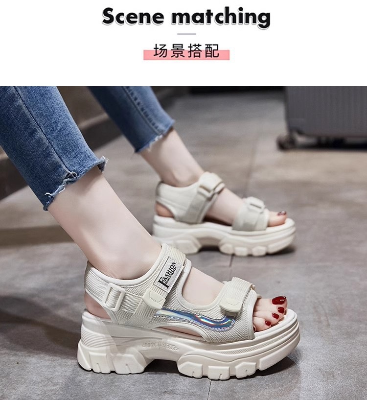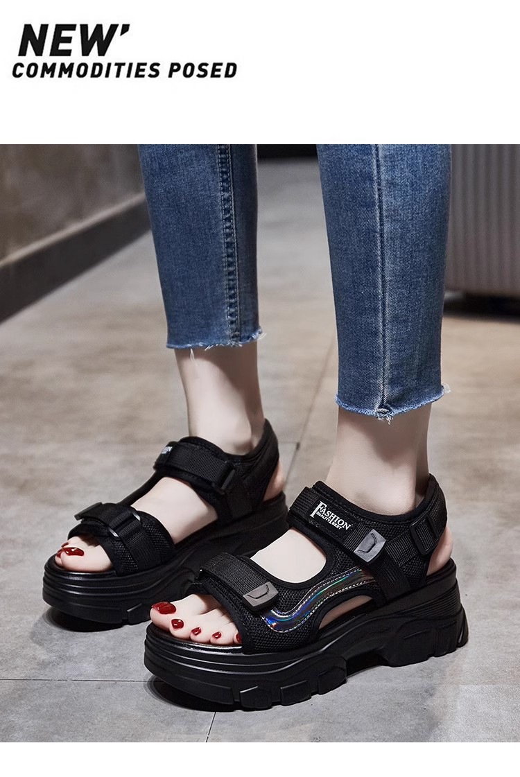 厚底运动凉鞋女2022夏季新款魔术贴百搭露趾平底网红潮休闲沙滩鞋