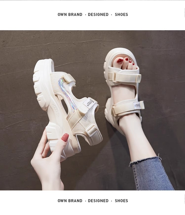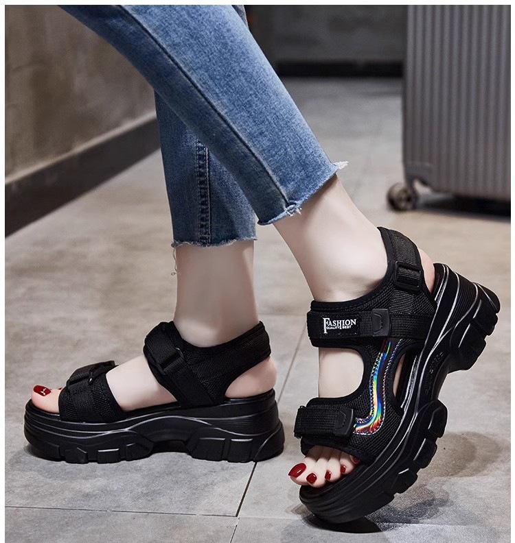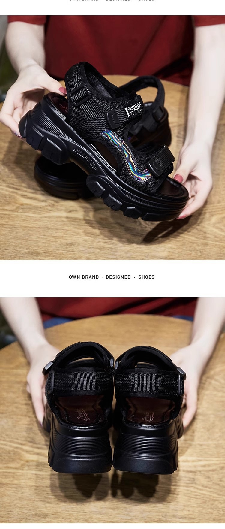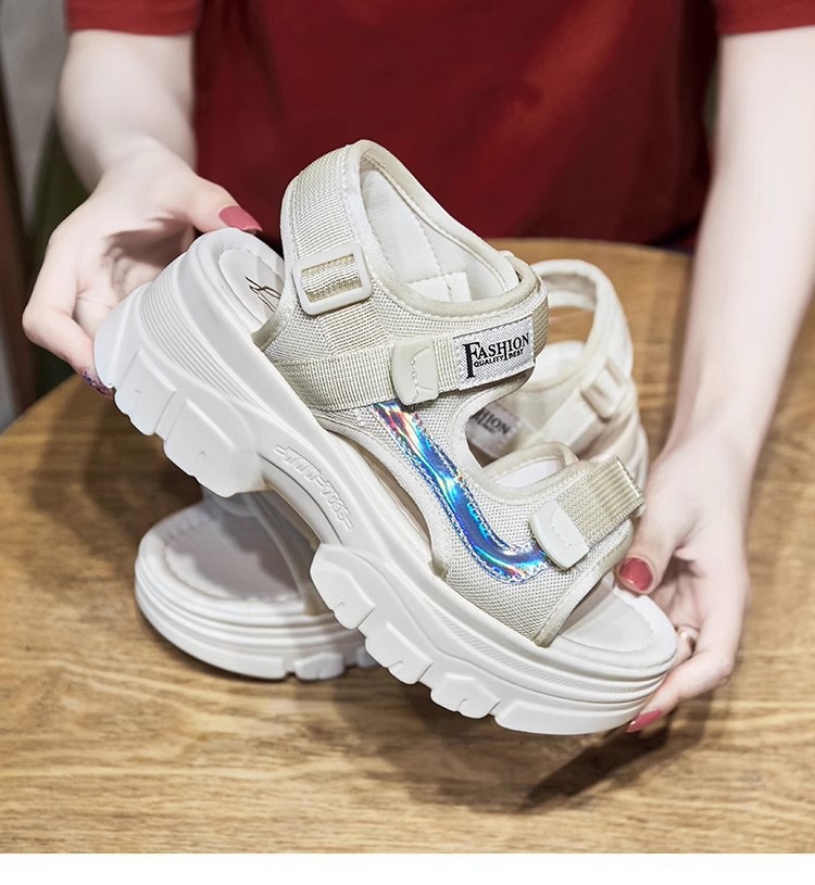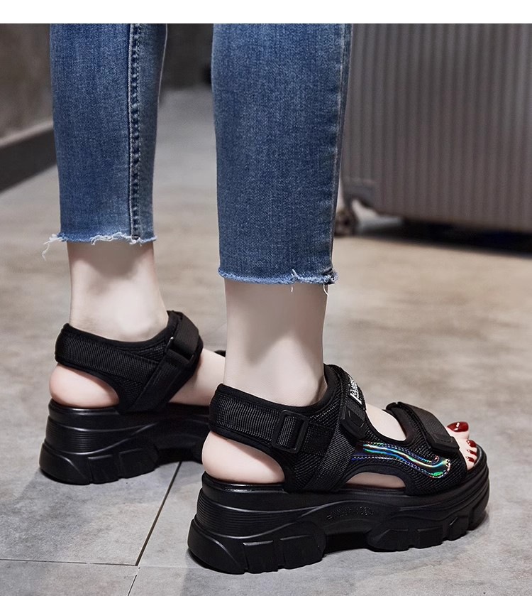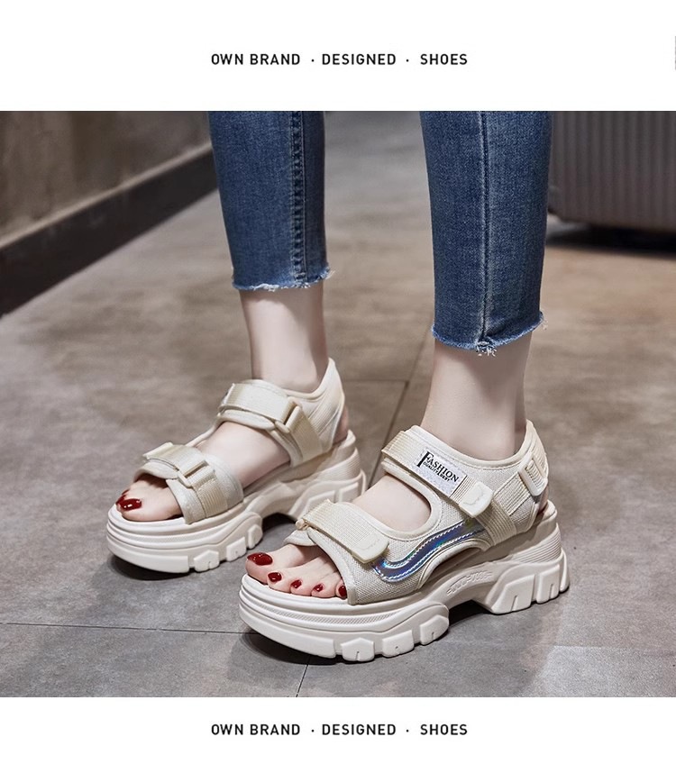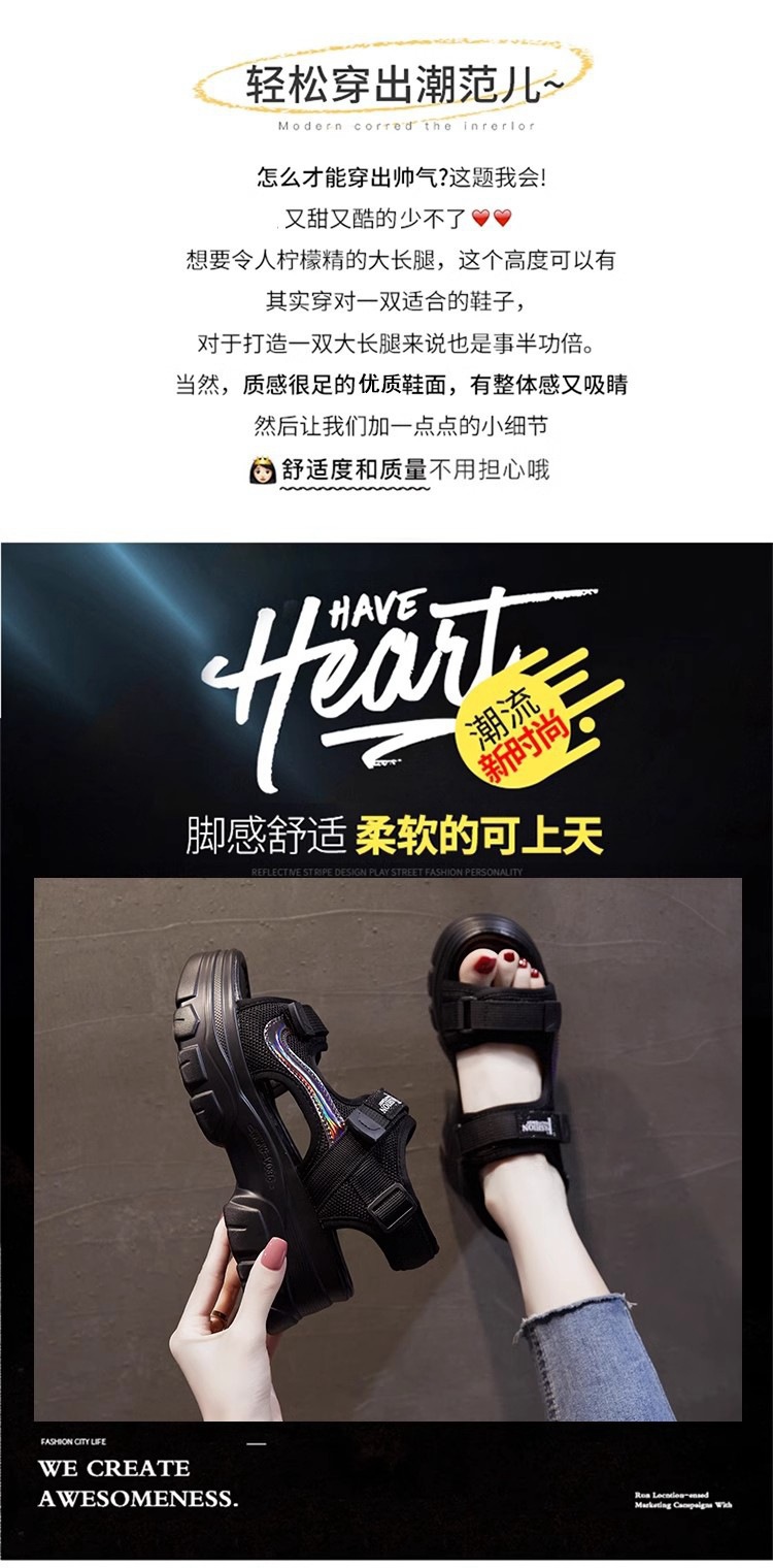 厚底运动凉鞋女2022夏季新款魔术贴百搭露趾平底网红潮休闲沙滩鞋